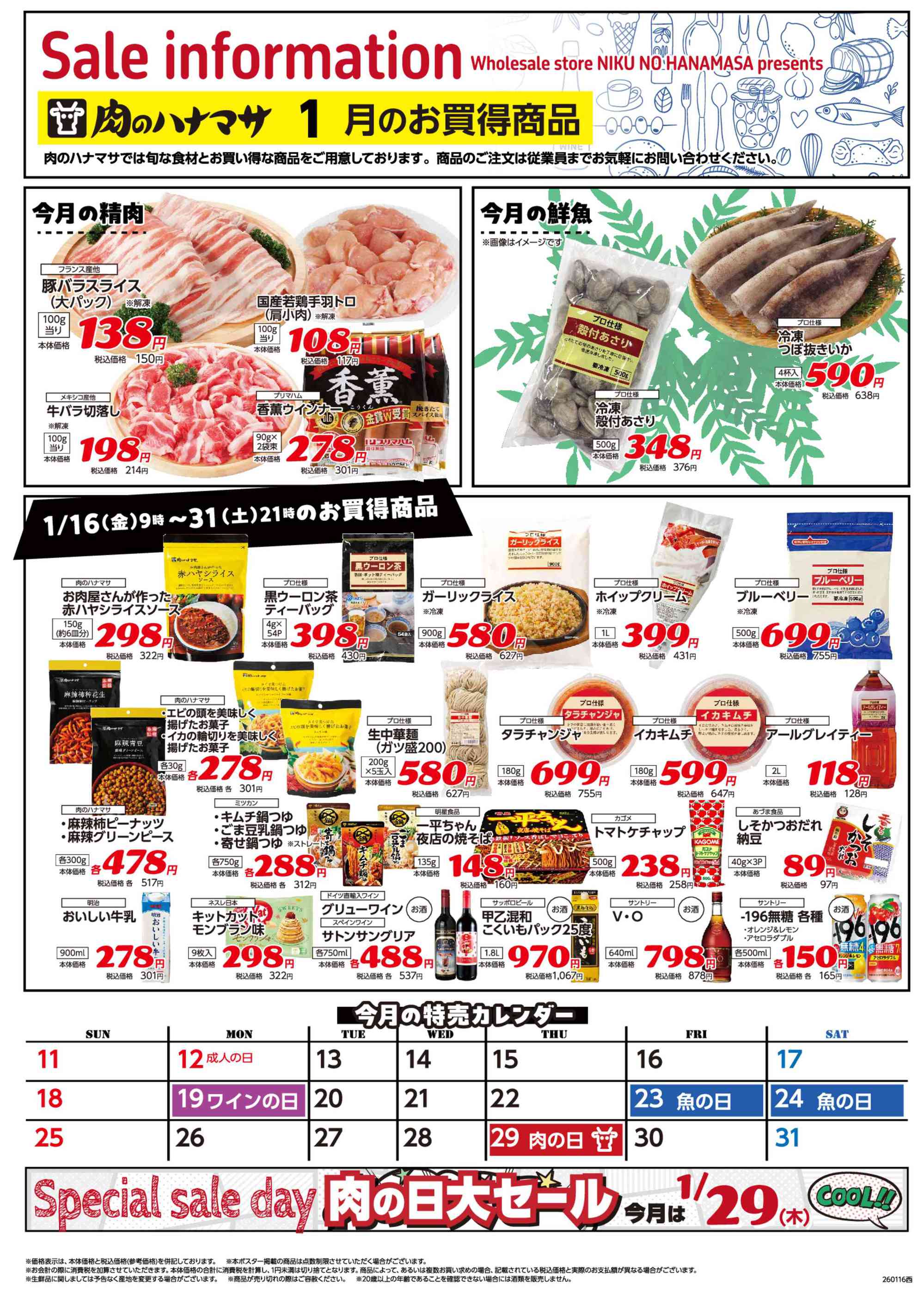 肉のハナマサPLUS我孫子店今週のチラシ(2026年1月19日〜1月25日)