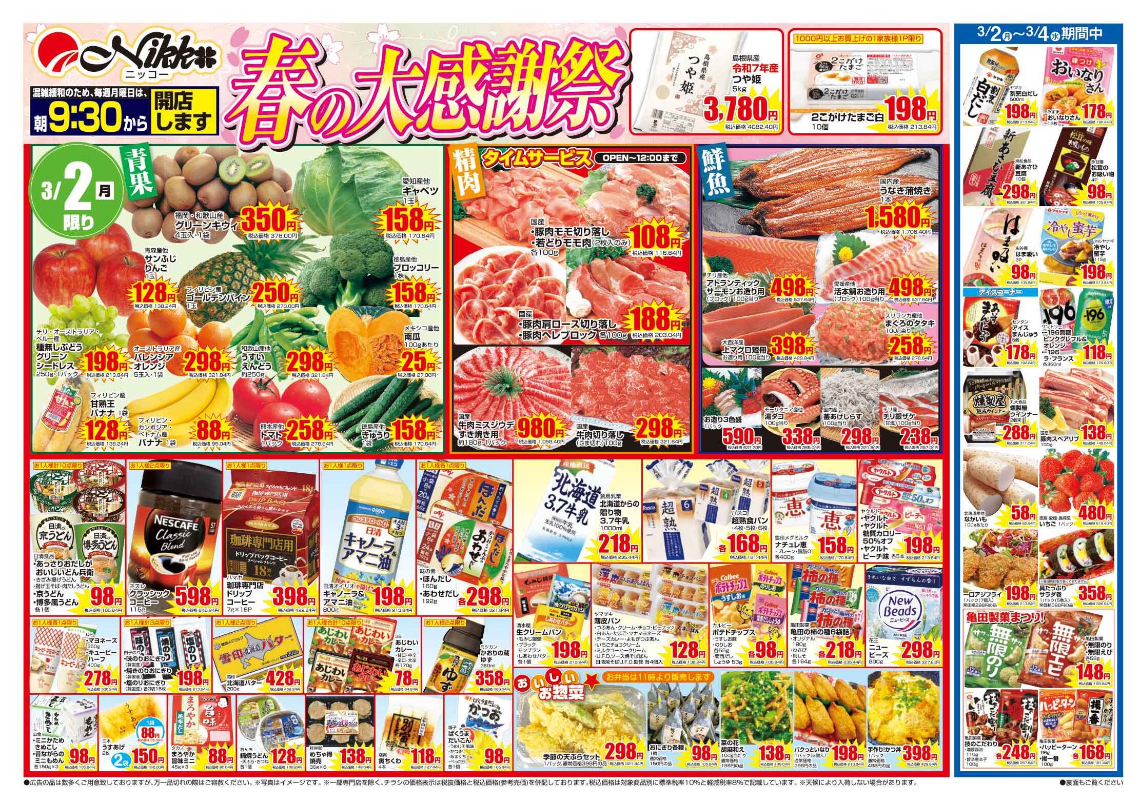 ニッコー大正店今週のチラシ(2026年3月2日〜3月8日)