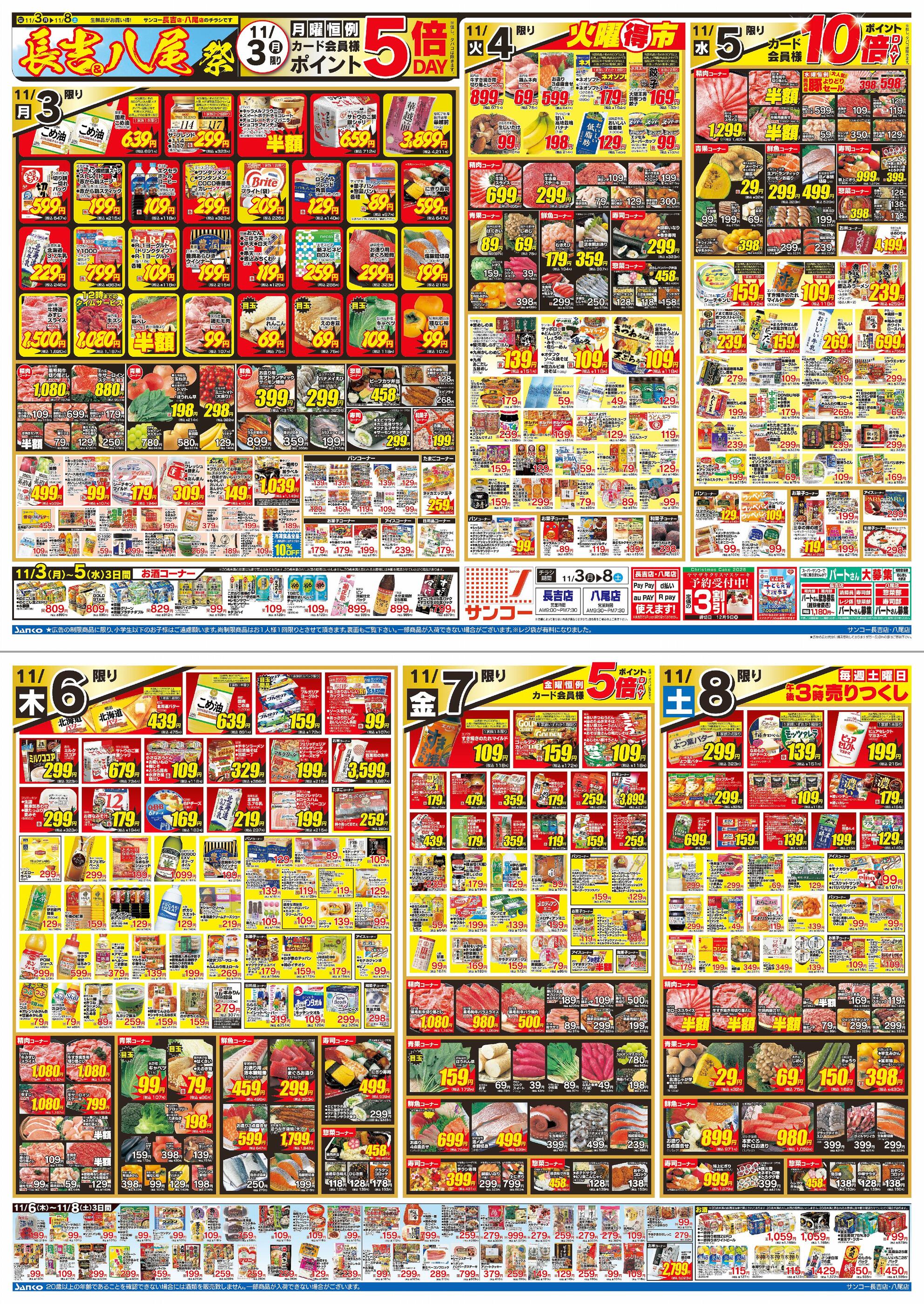 スーパーサンコー長吉店今週のチラシ(2025年11月10日〜11月16日)