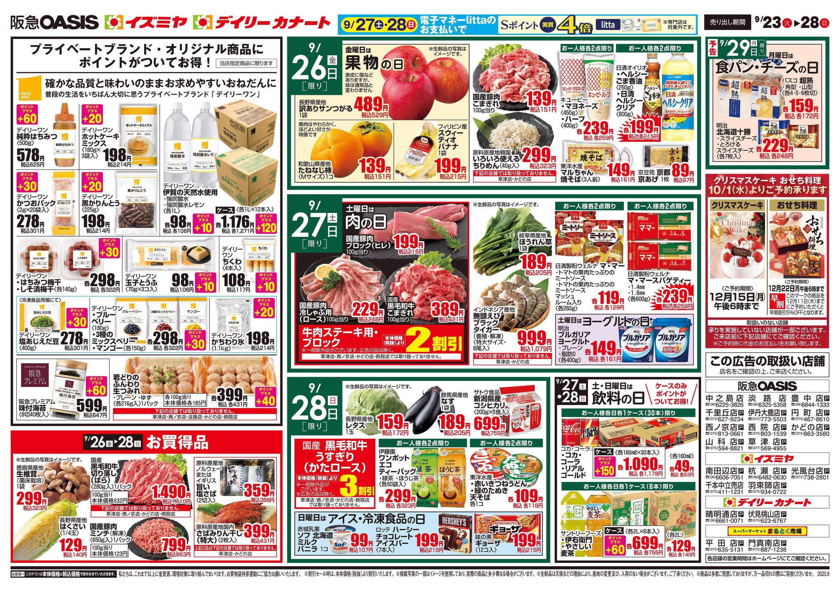 デイリーカナートイズミヤ南田辺店今週のチラシ(2025年9月29日〜10月5日)