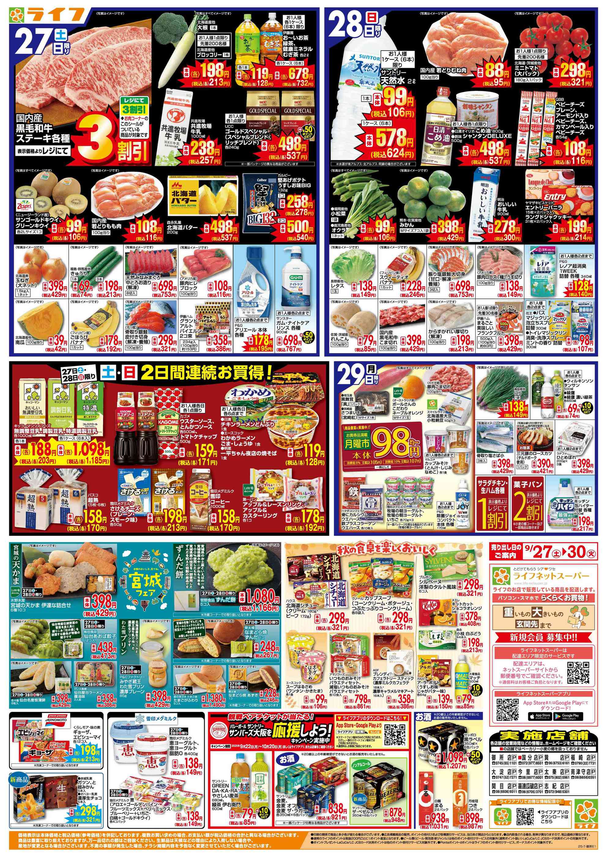 ライフ今里店今週のチラシ(2025年9月29日〜10月5日)