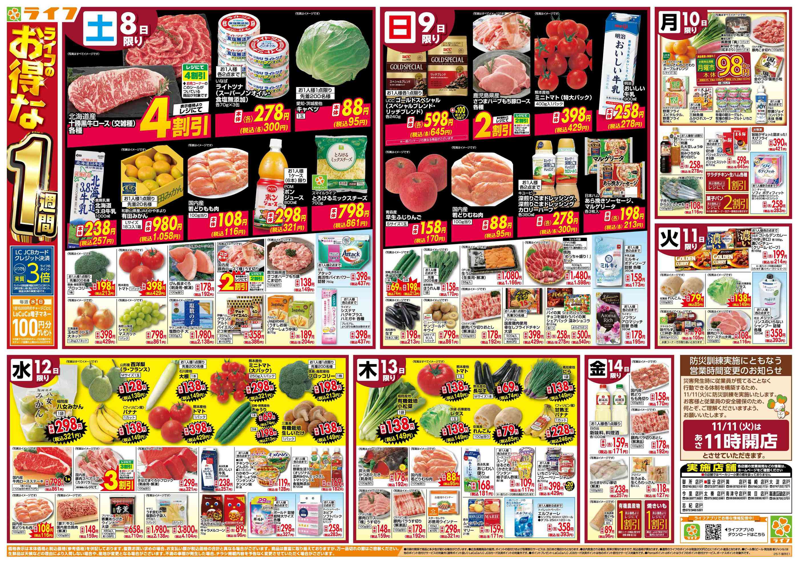 ライフ今里店今週のチラシ(2025年11月10日〜11月16日)
