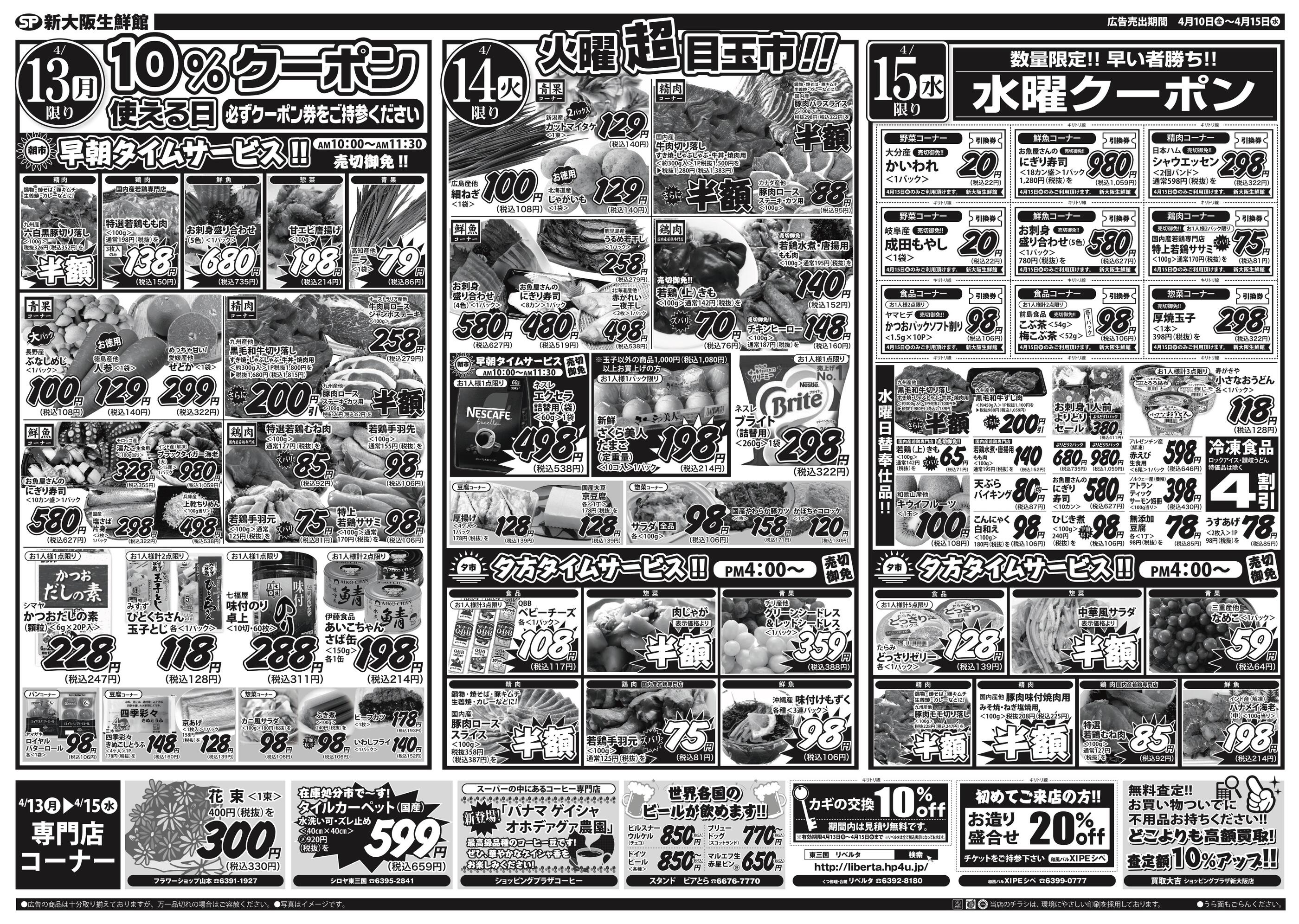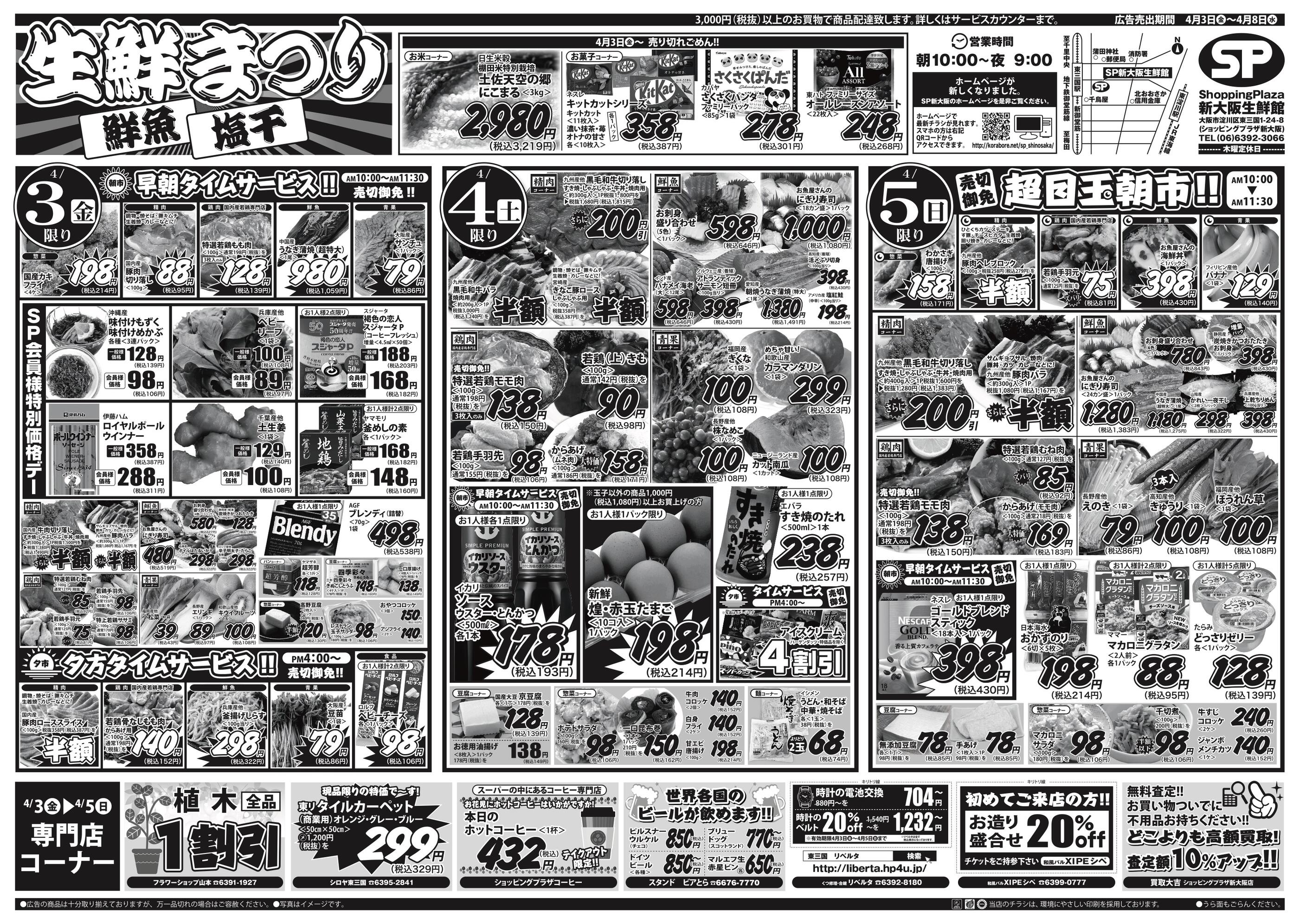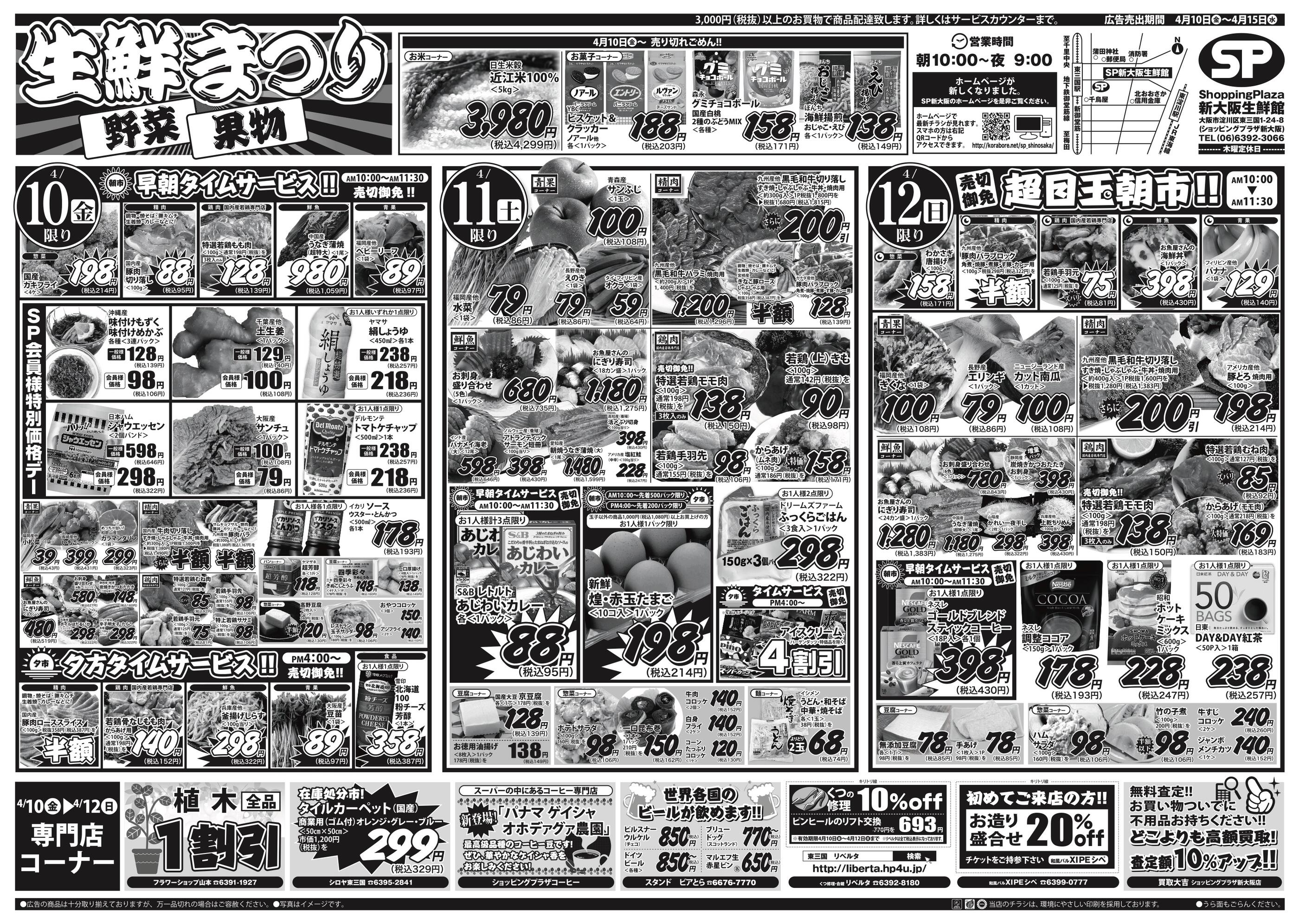ショッピングプラザ新大阪生鮮館今週のチラシ(2026年4月6日〜4月12日)