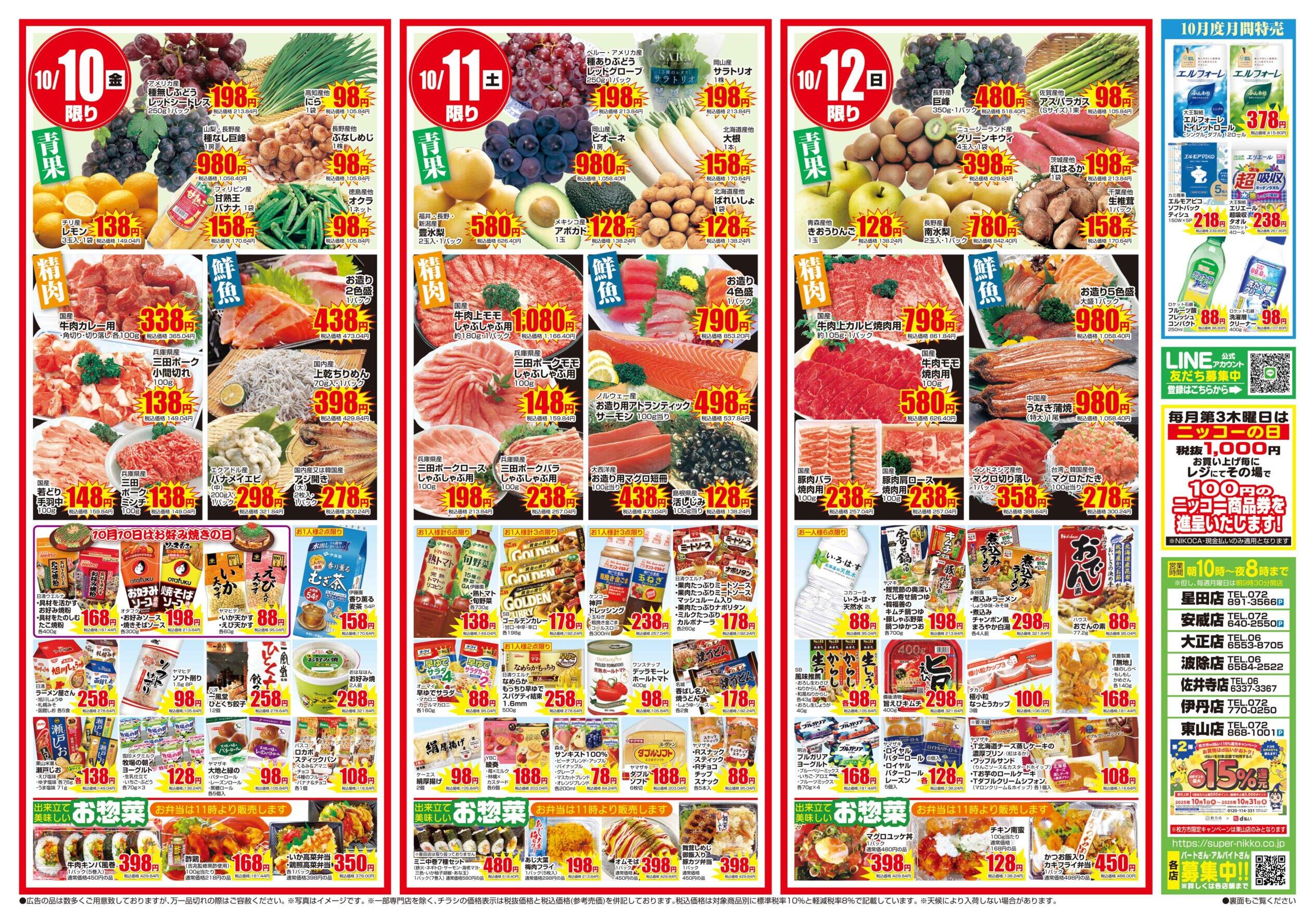 ニッコー波除店今週のチラシ(2025年10月6日〜10月12日)