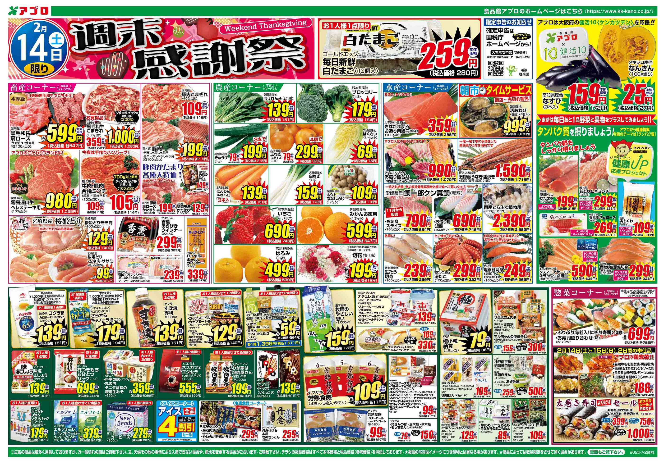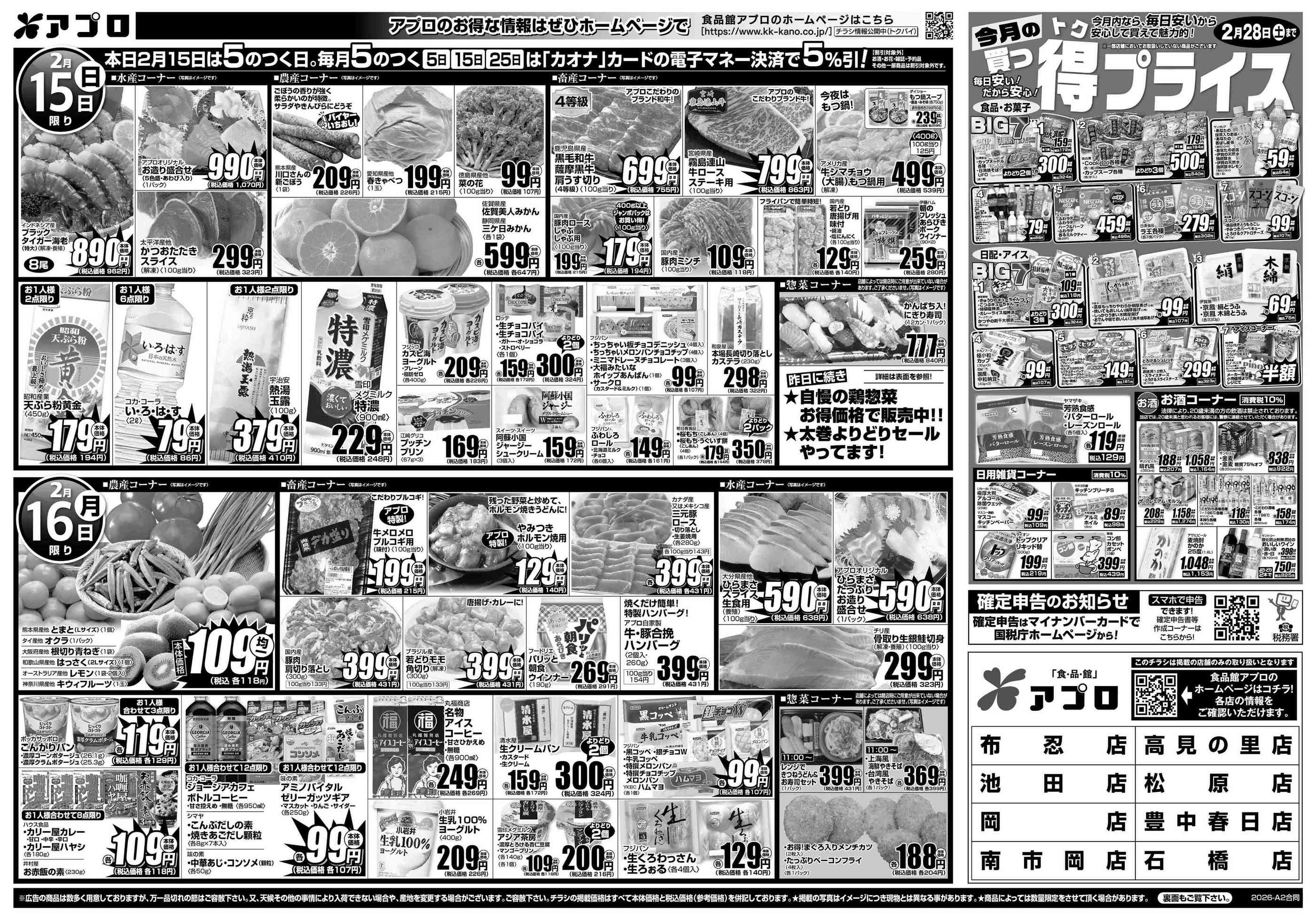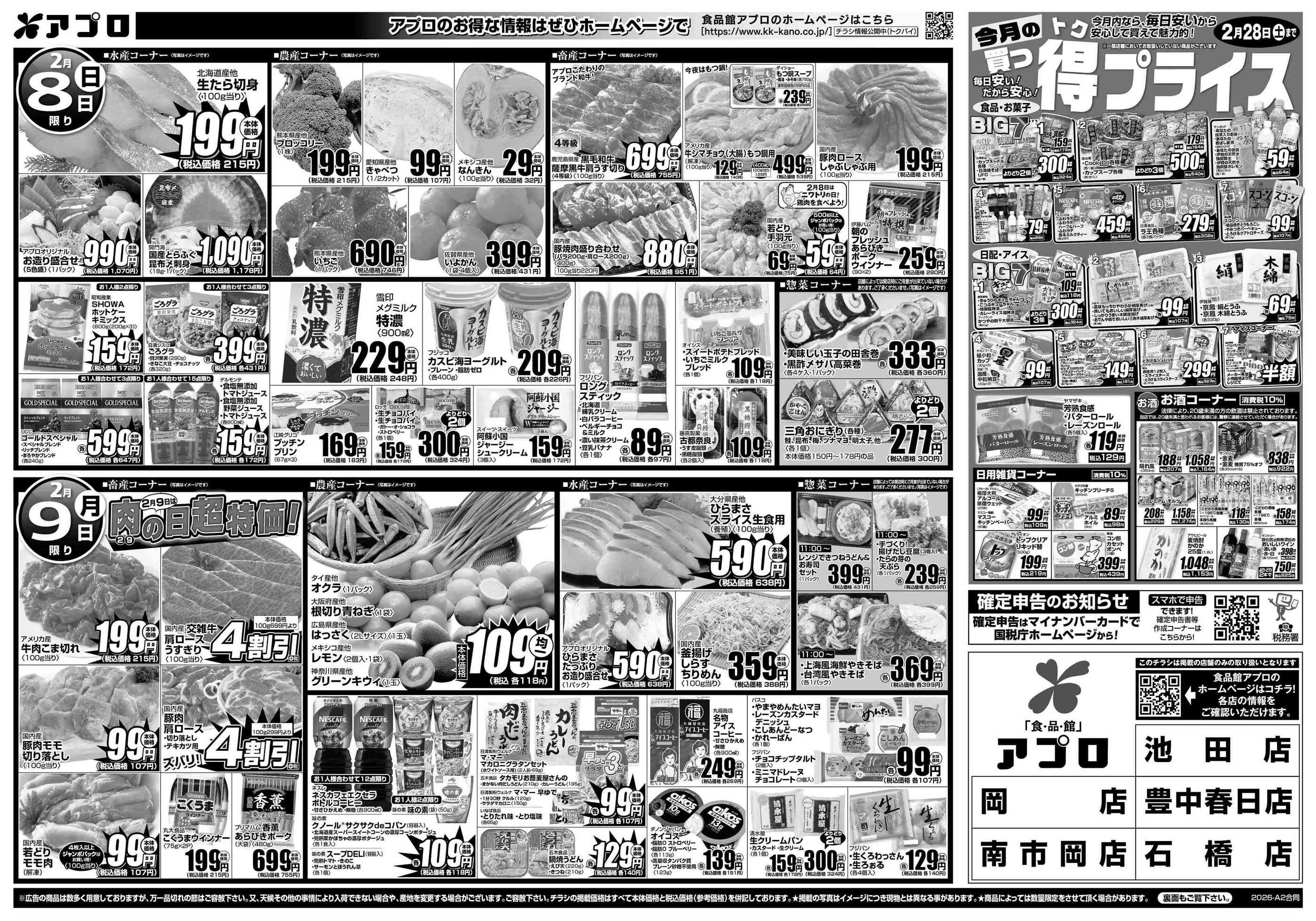 食品館アプロ南市岡店今週のチラシ(2026年2月9日〜2月15日)