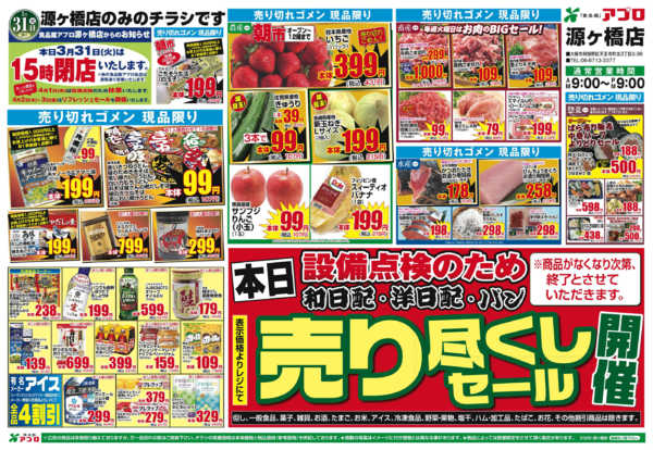 特売やセール情報など最新のチラシを掲載中。(1種類、2枚のチラシを掲載しています)