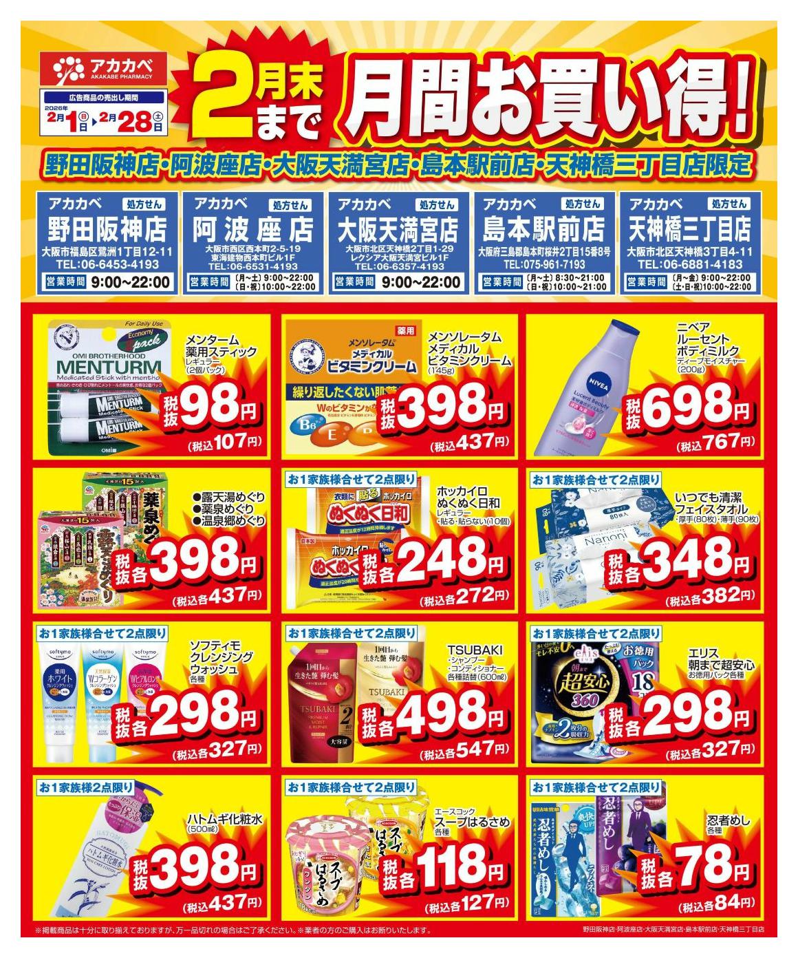 ドラッグアカカベ阿波座店今週のチラシ(2026年2月23日〜3月1日)
