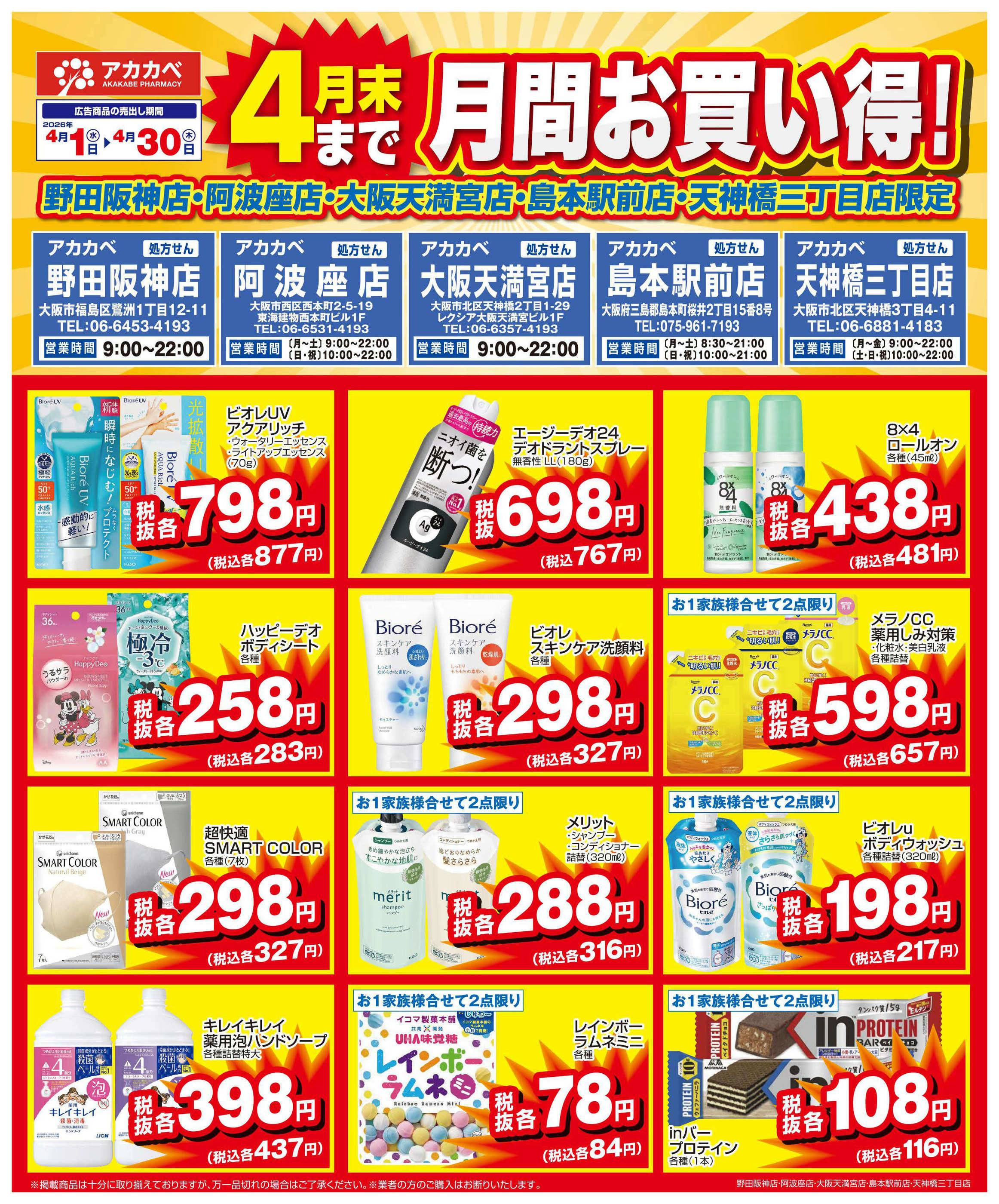 ドラッグアカカベ阿波座店今週のチラシ(2026年4月6日〜4月12日)