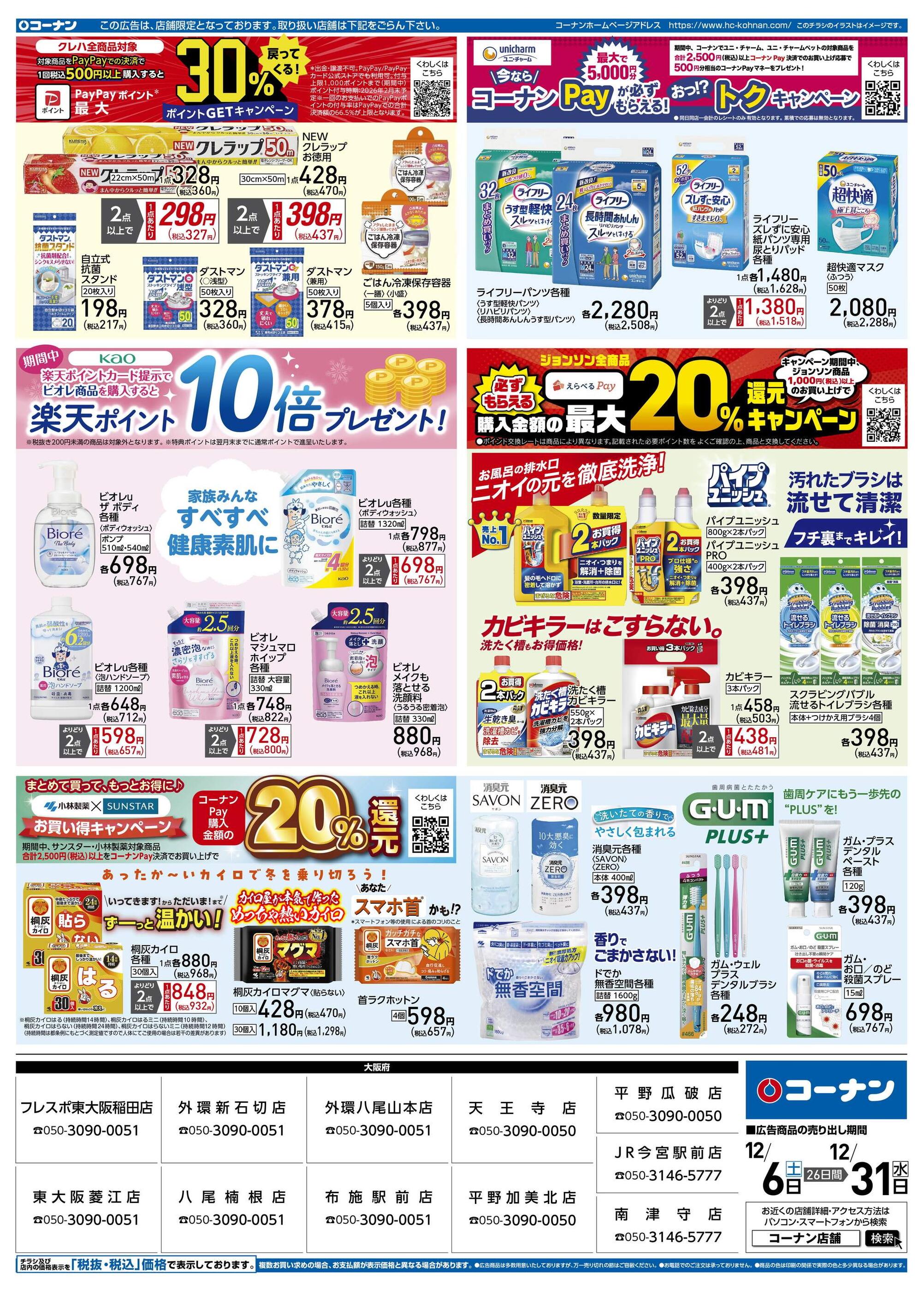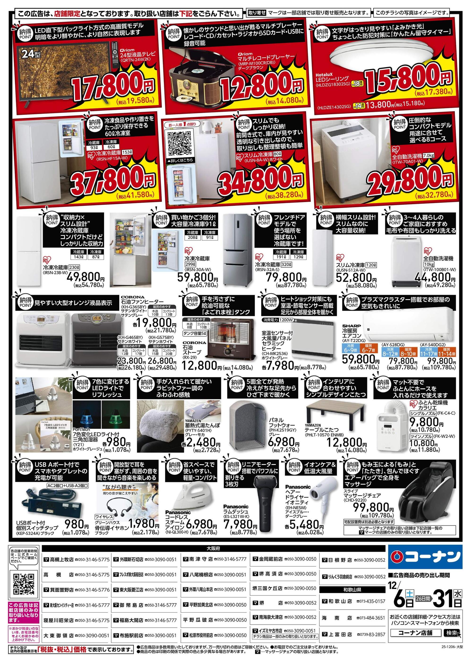 ホームセンターコーナン南津守店今週のチラシ(2025年12月8日〜12月14日)