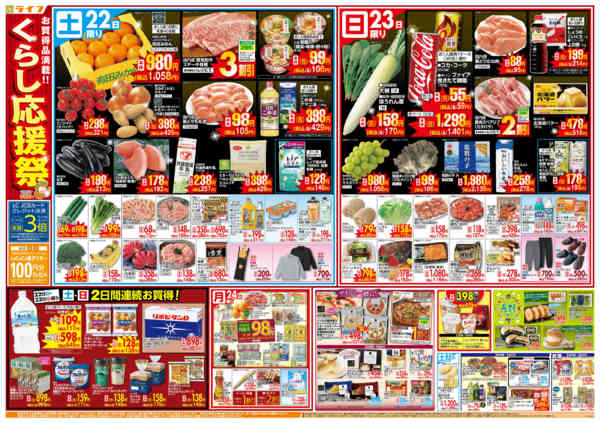 特売やセール情報など最新のチラシを掲載中。(3種類、4枚のチラシを掲載しています)