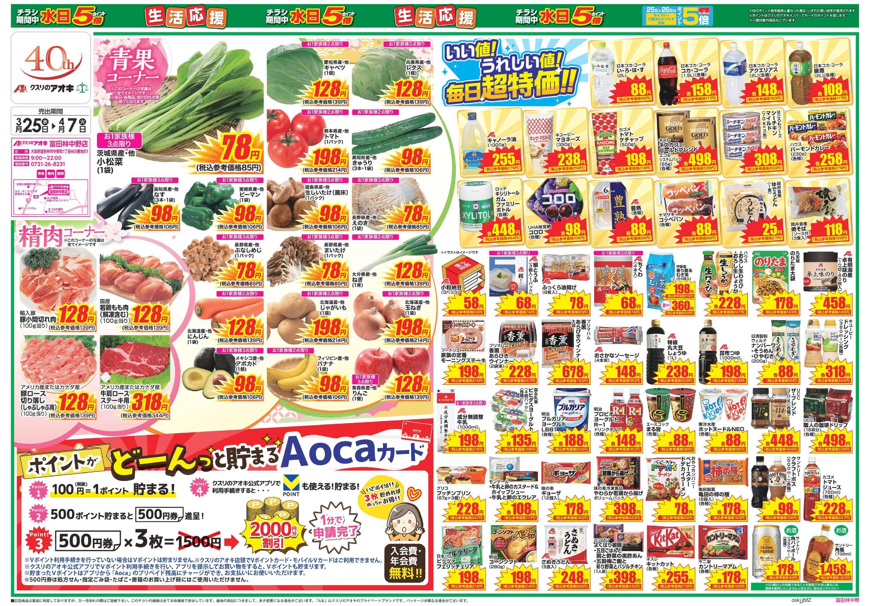 クスリのアオキ富田林中野店今週のチラシ(2026年3月30日〜4月5日)