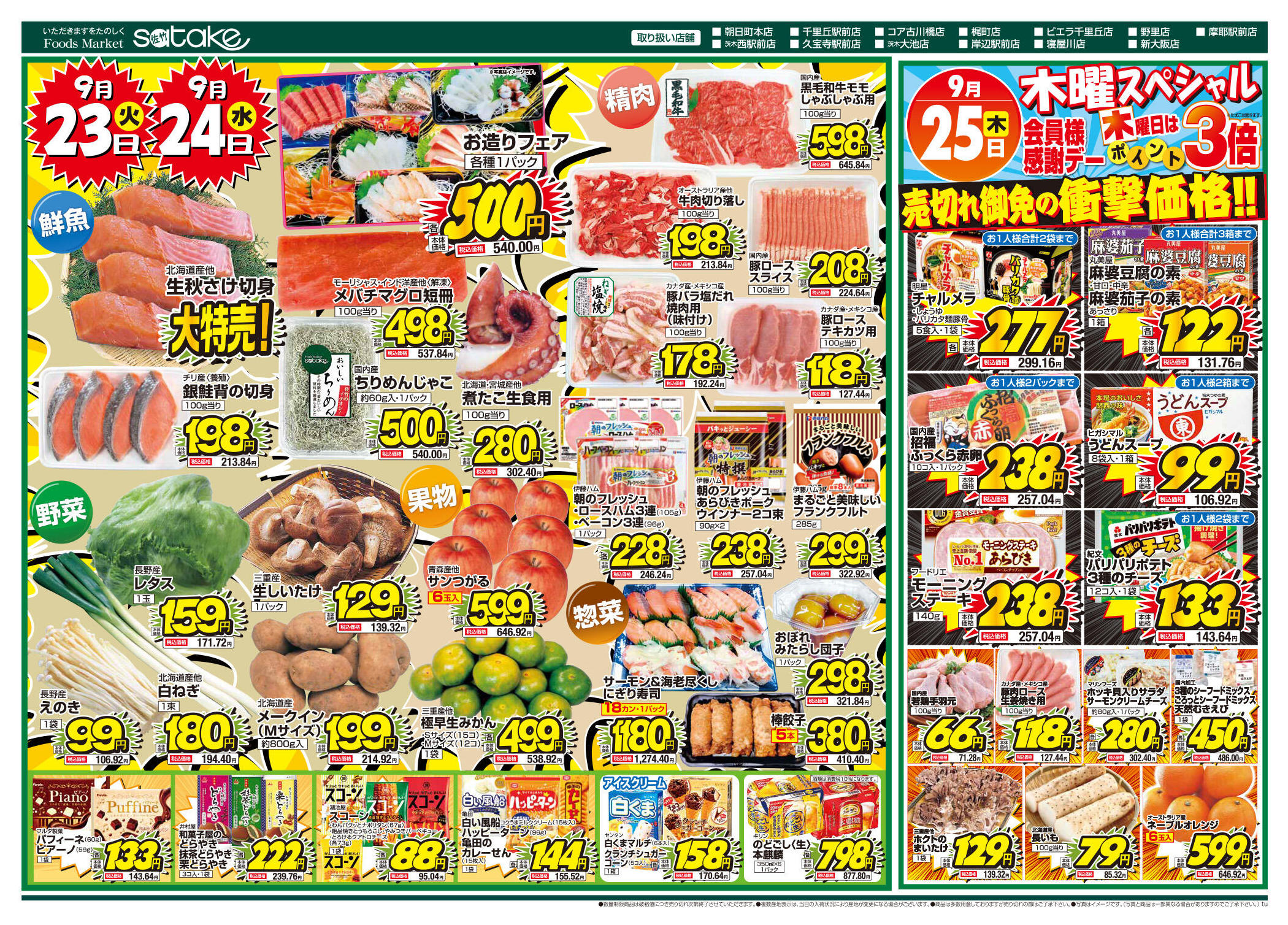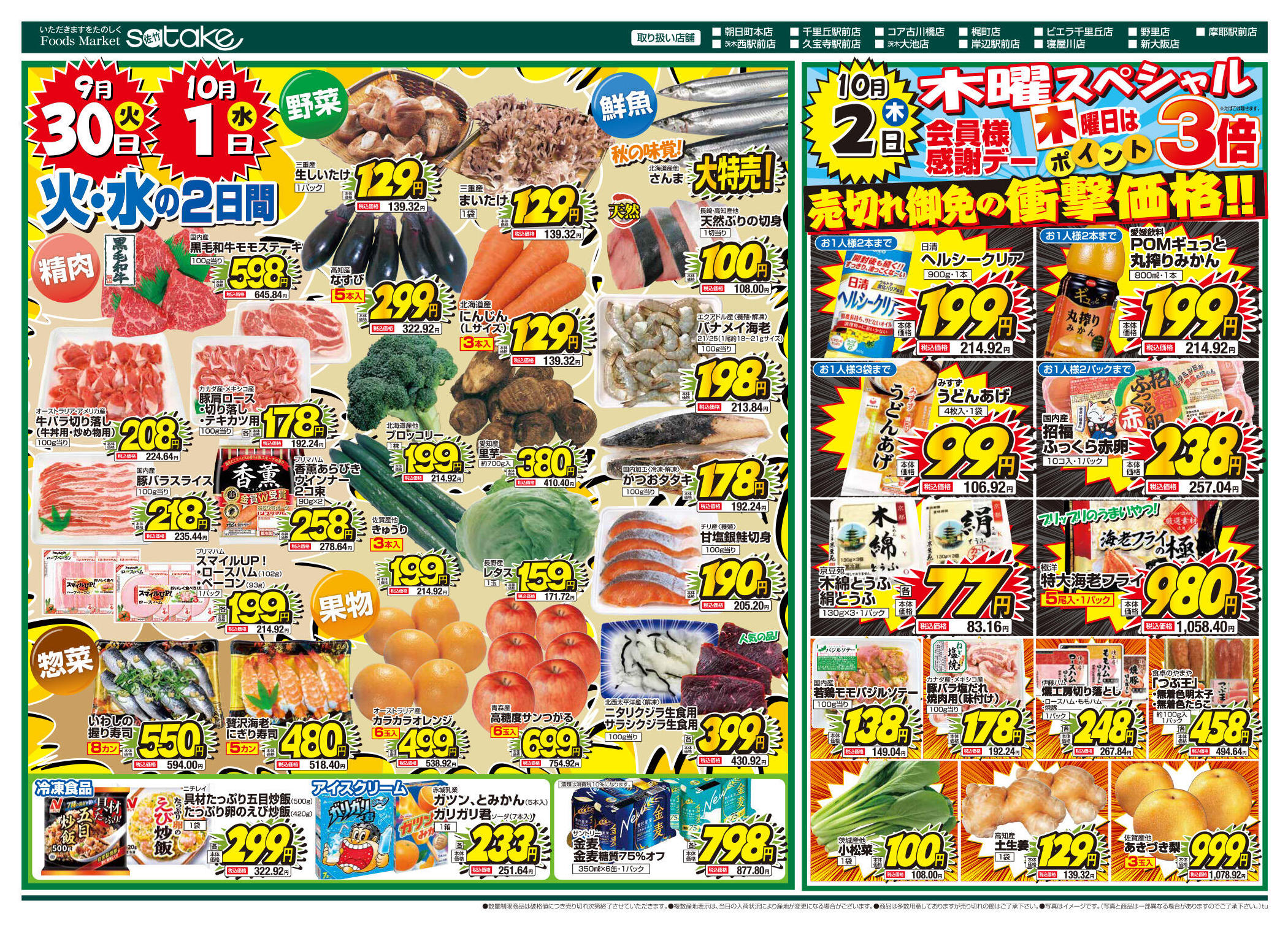 フーズマーケットサタケ寝屋川店今週のチラシ(2025年9月29日〜10月5日)