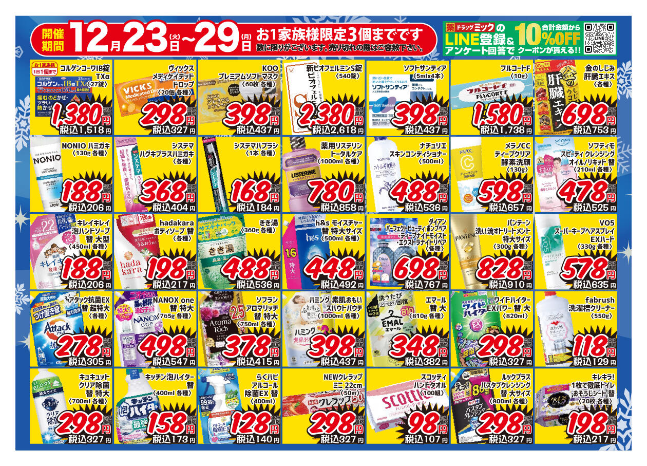 ドラッグミックサンロード瓢箪山店今週のチラシ(2025年12月29日〜1月4日)