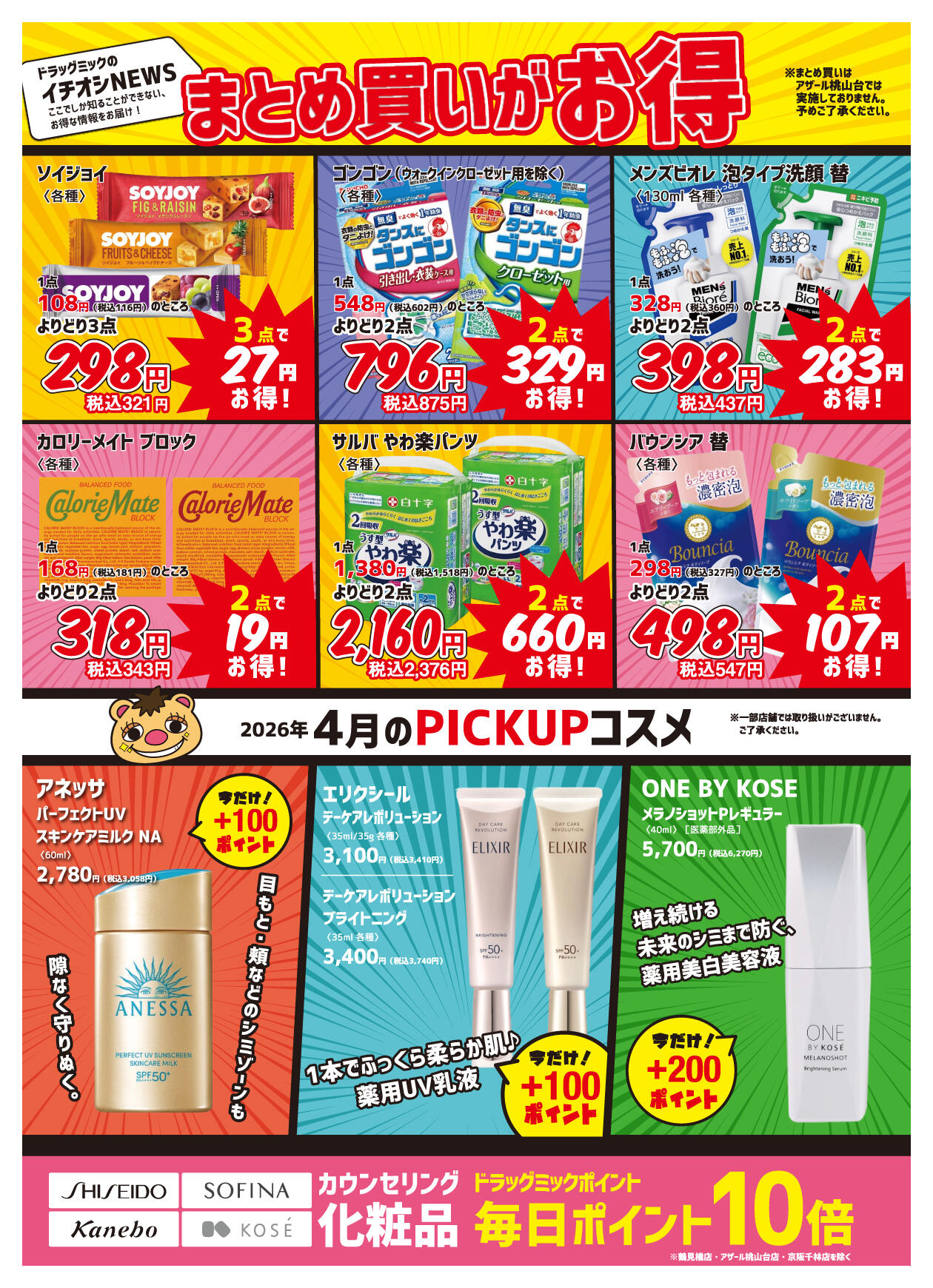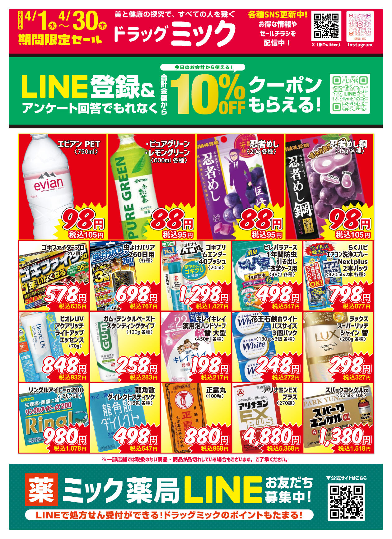 ドラッグミックサンロード瓢箪山店今週のチラシ(2026年3月30日〜4月5日)