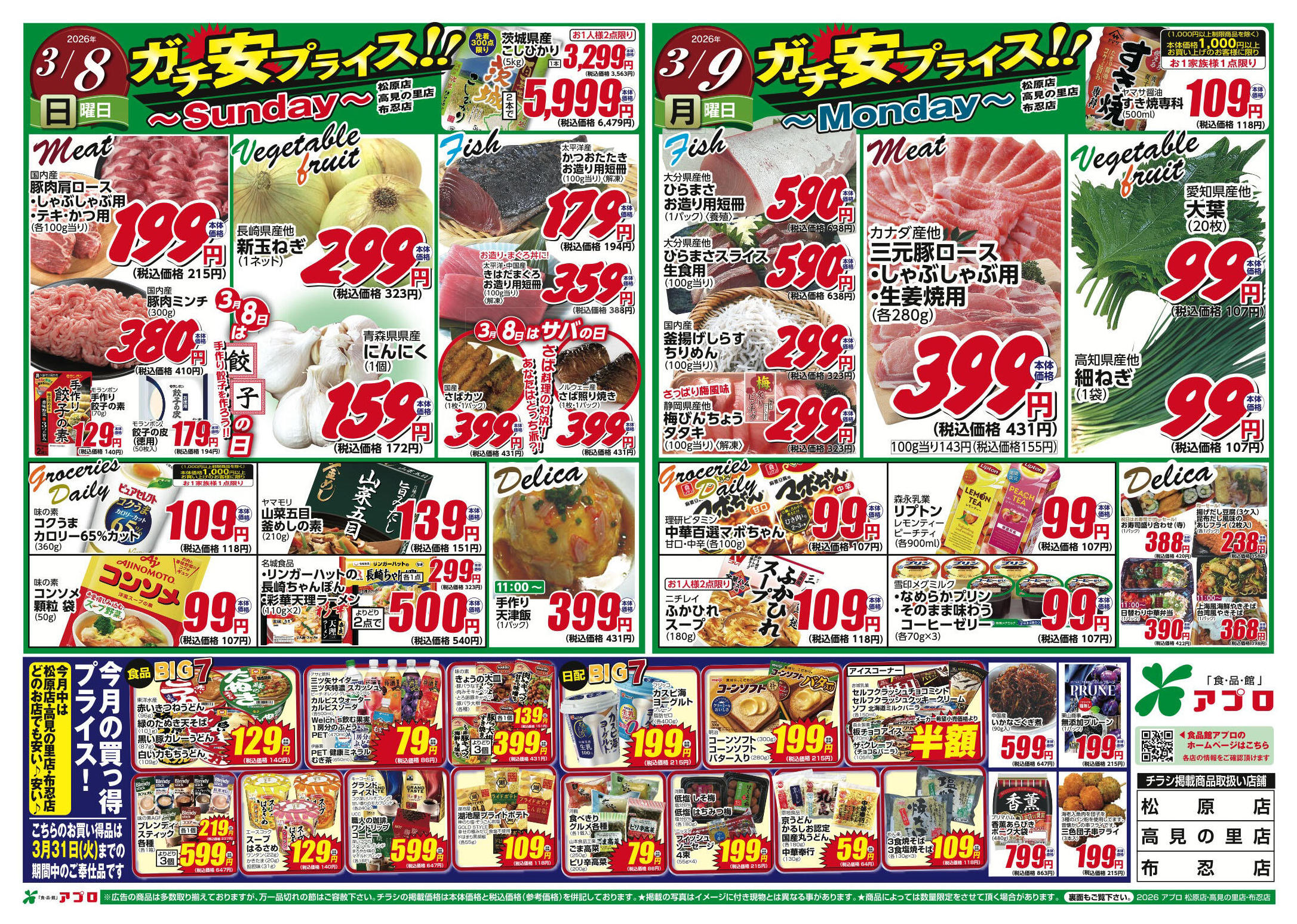食品館アプロ松原店今週のチラシ(2026年3月2日〜3月8日)