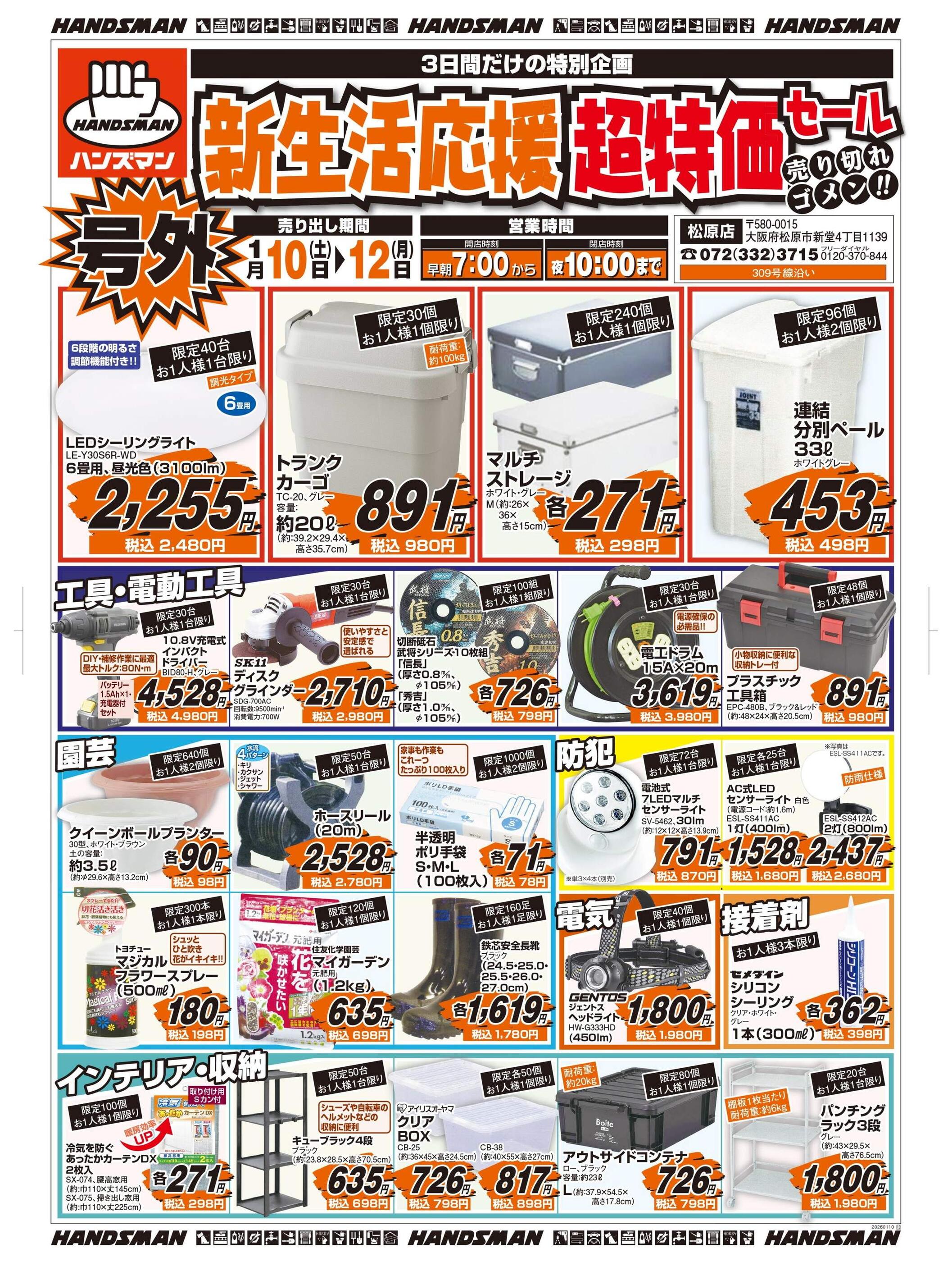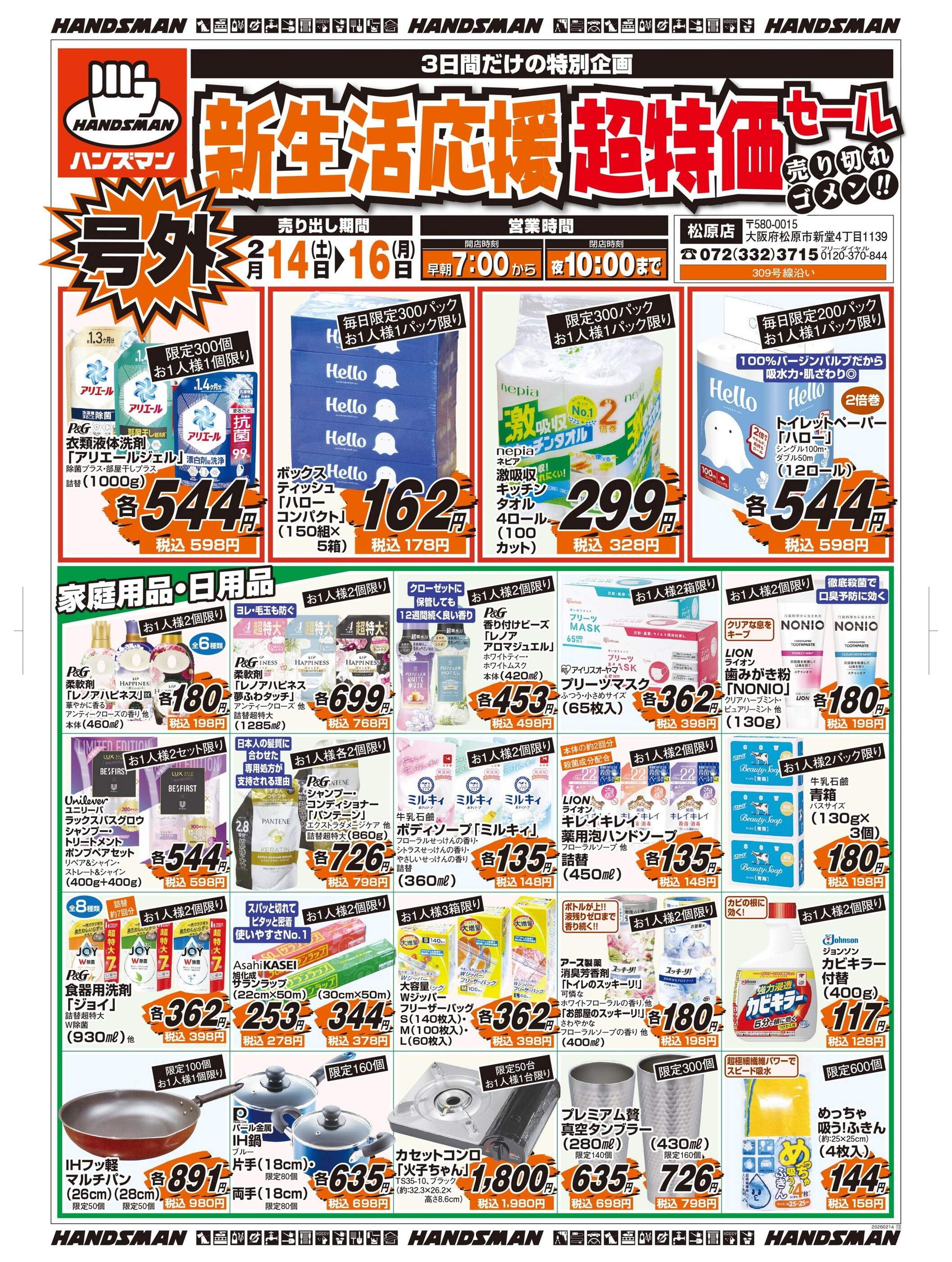ハンズマン松原店今週のチラシ(2026年2月9日〜2月15日)