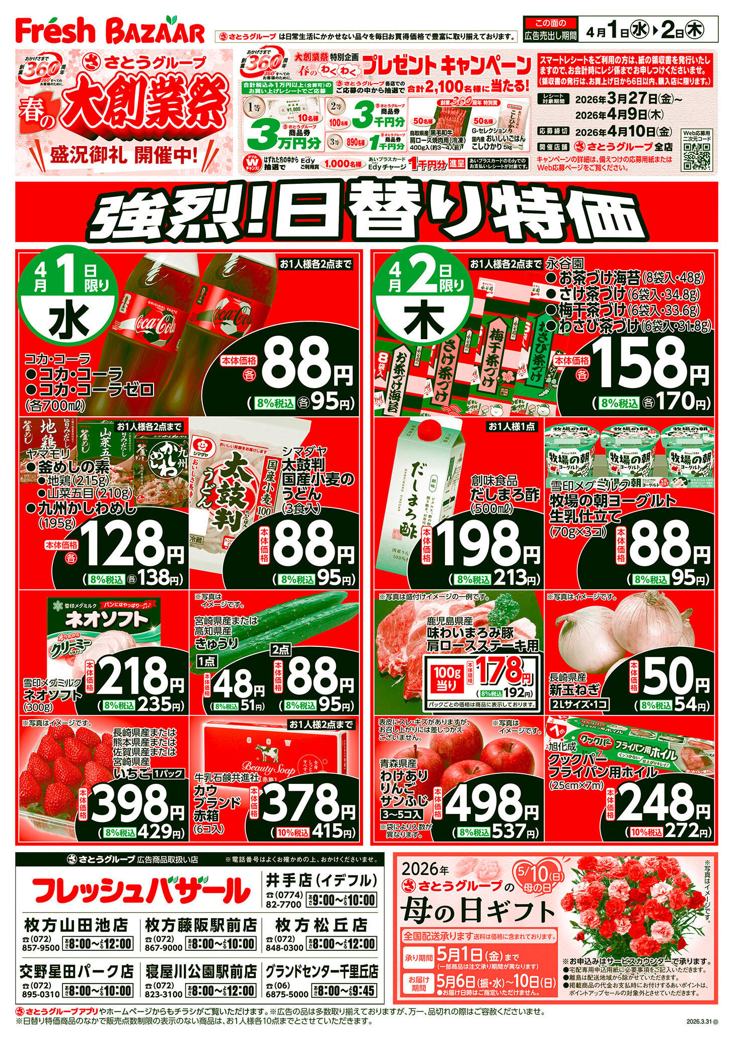 フレッシュバザール枚方山田池店今週のチラシ(2026年3月30日〜4月5日)