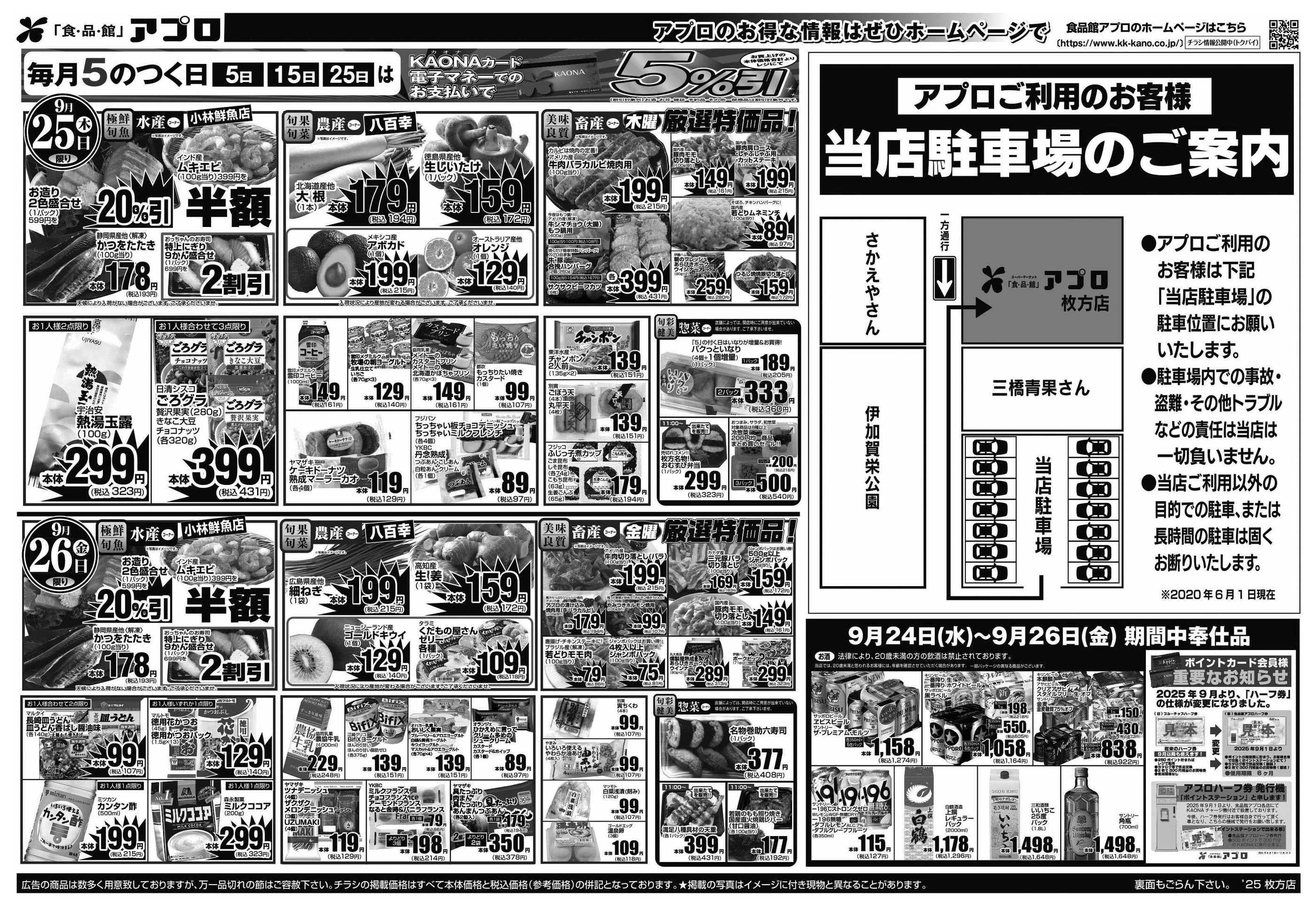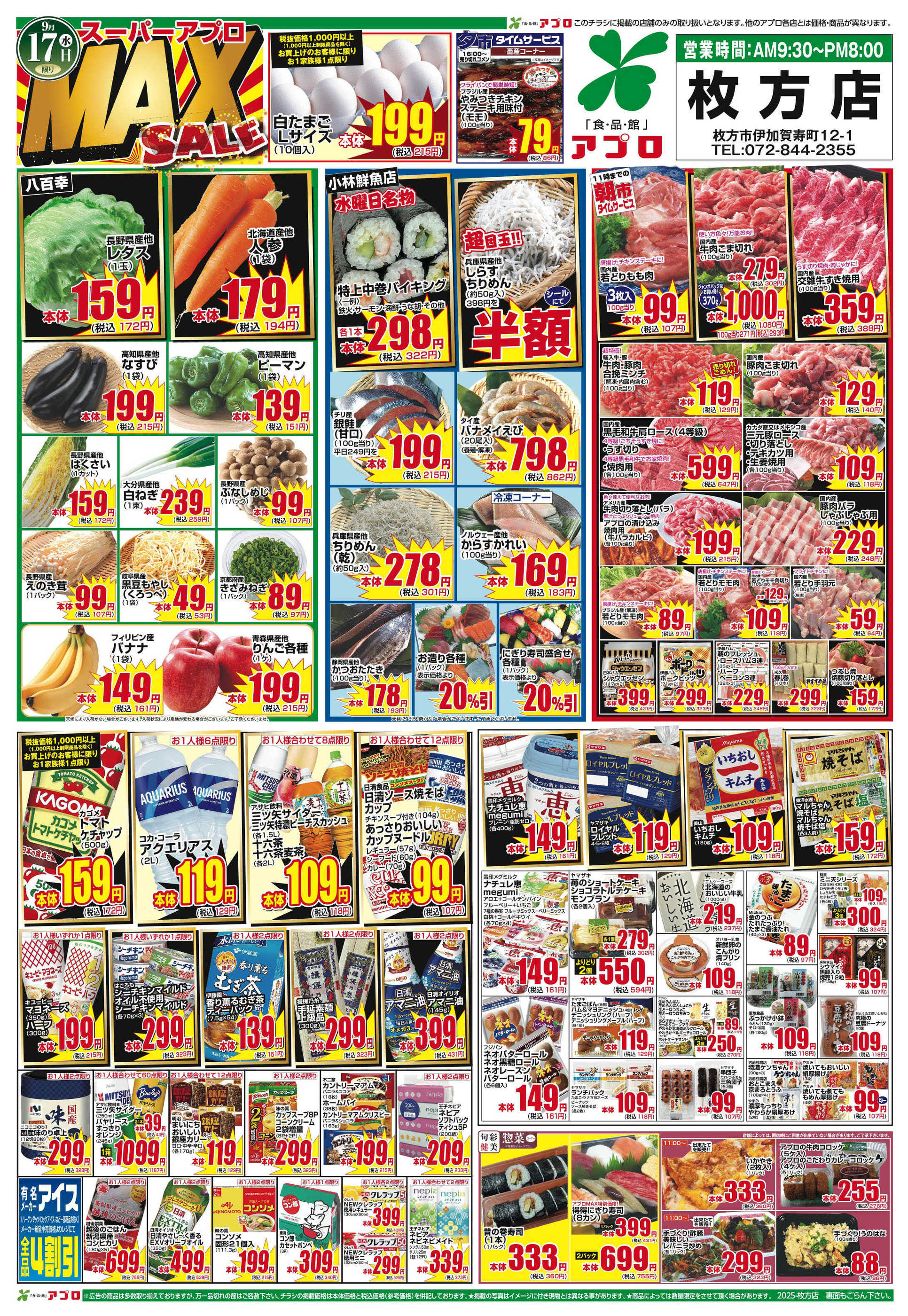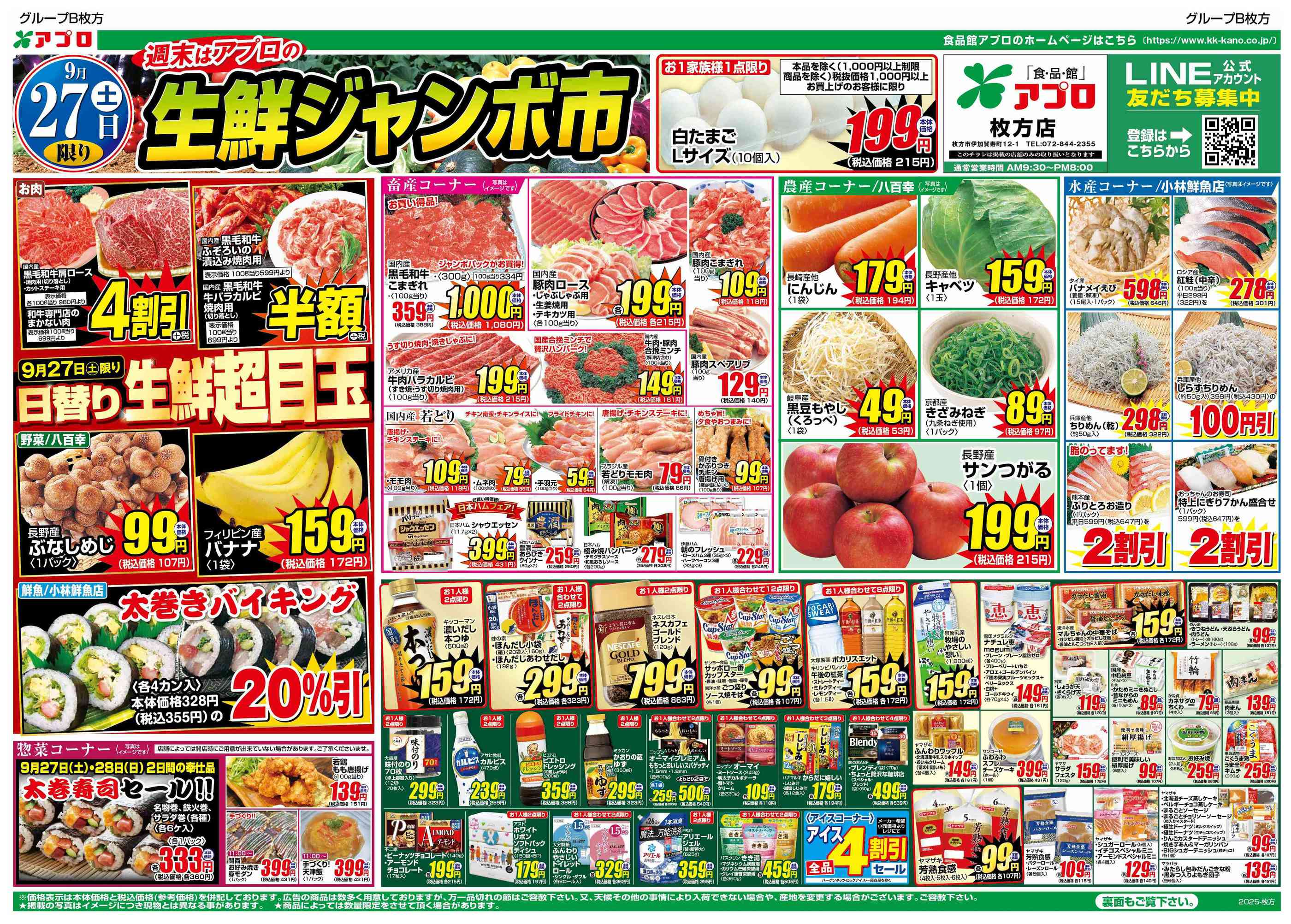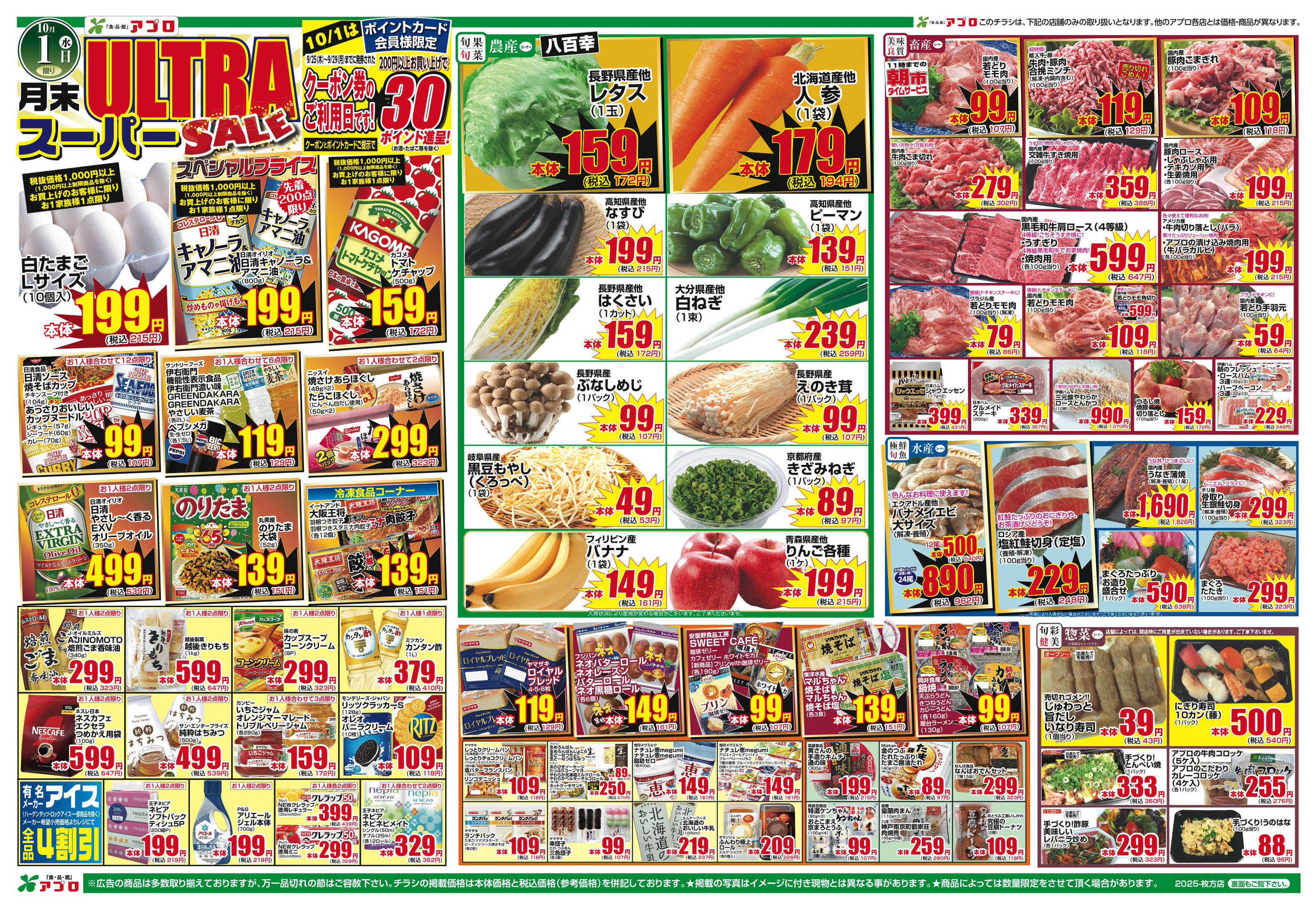 食品館アプロ枚方店今週のチラシ(2025年9月29日〜10月5日)