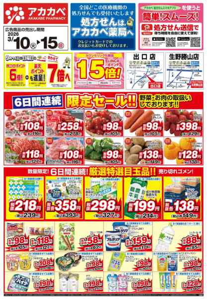 ※「店舗の掲載内容について」チラシガイドに掲載している情報は、独自に調査した内容及びユーザーから頂いた情報を掲載しています。お気づきの点がございましたら「お問い合わせ」よりご連絡ください。また店舗の営業状況、商品に関するお問い合わせは直接店舗事業者にご確認ください。