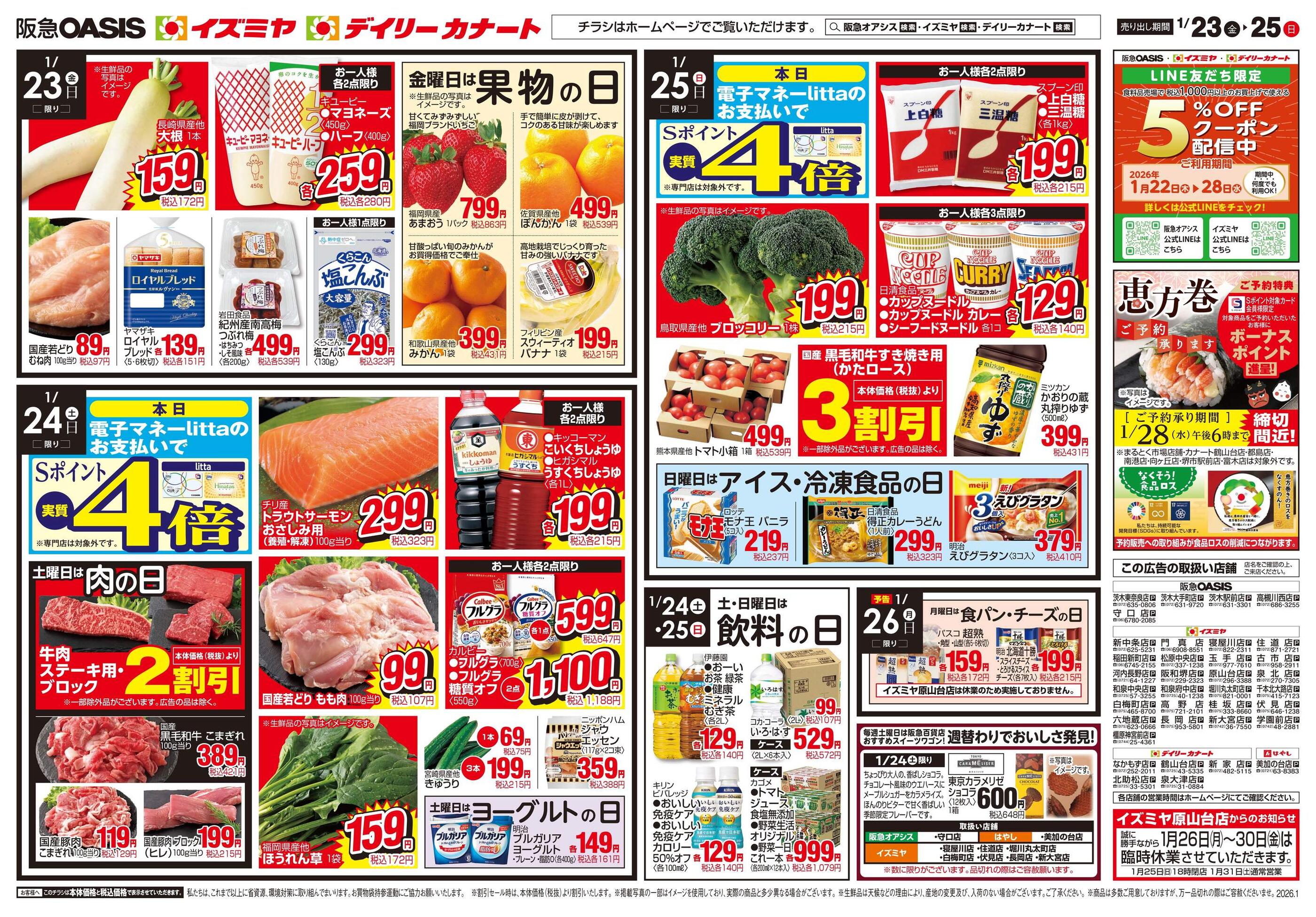 デイリーカナートイズミヤ玉手店今週のチラシ(2026年1月19日〜1月25日)