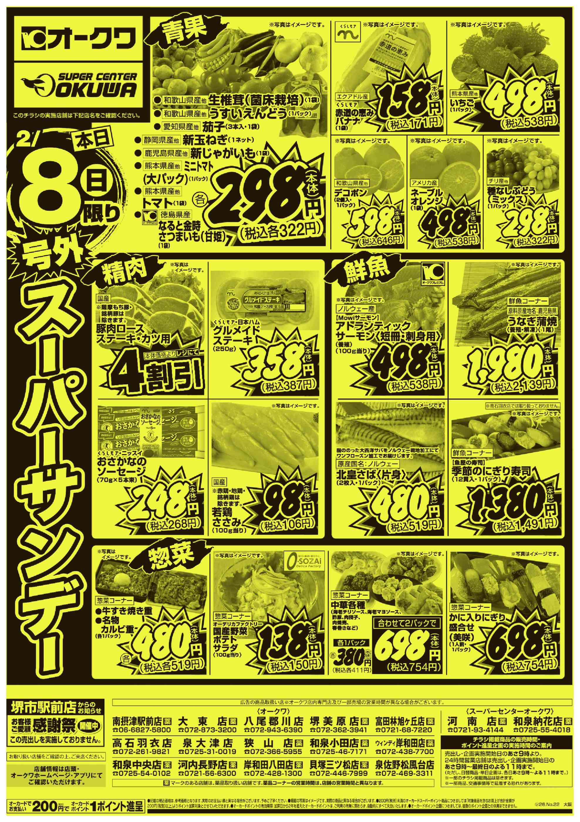 オークワ河内長野店今週のチラシ(2026年2月9日〜2月15日)