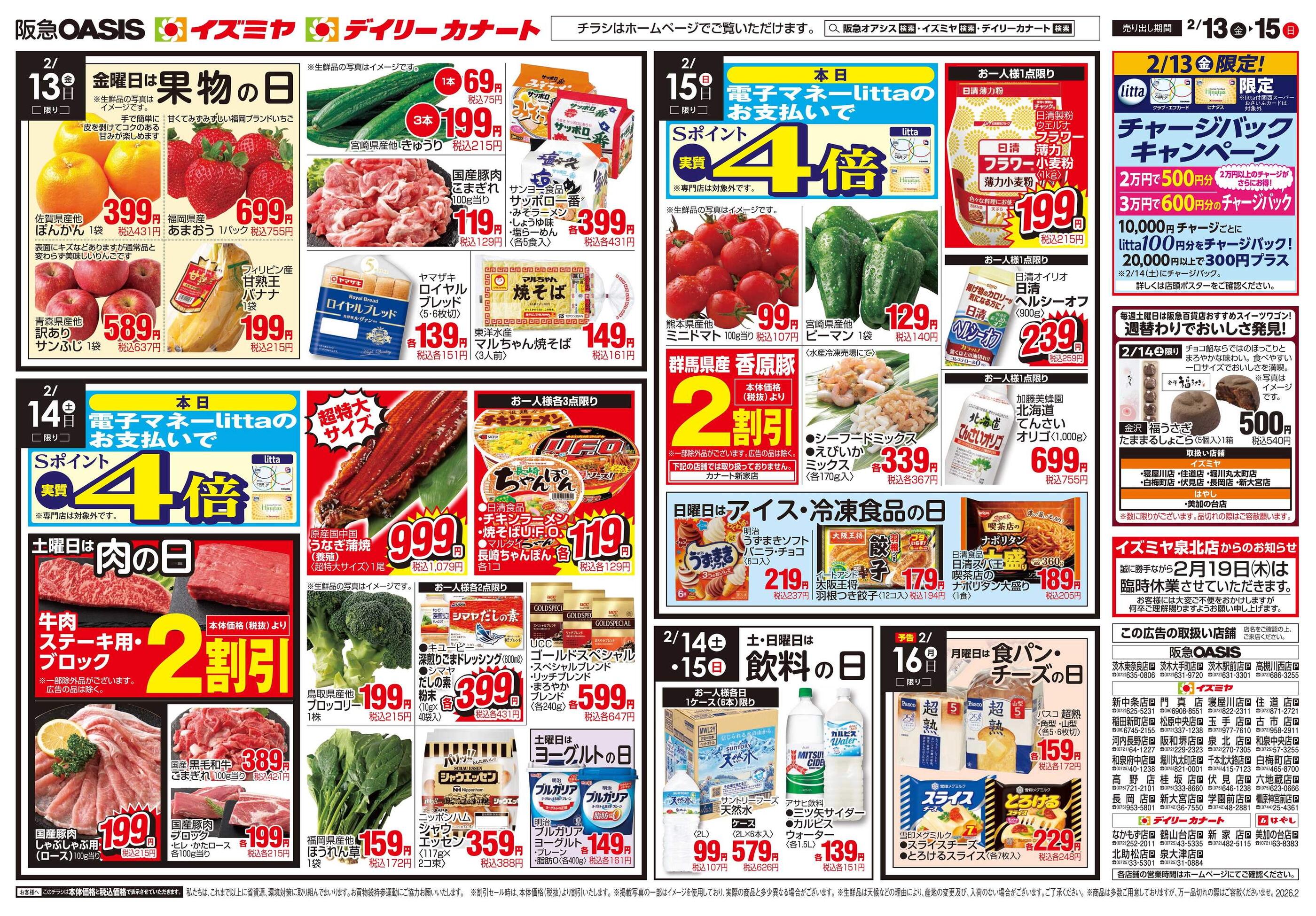 デイリーカナートイズミヤ和泉府中店今週のチラシ(2026年2月9日〜2月15日)
