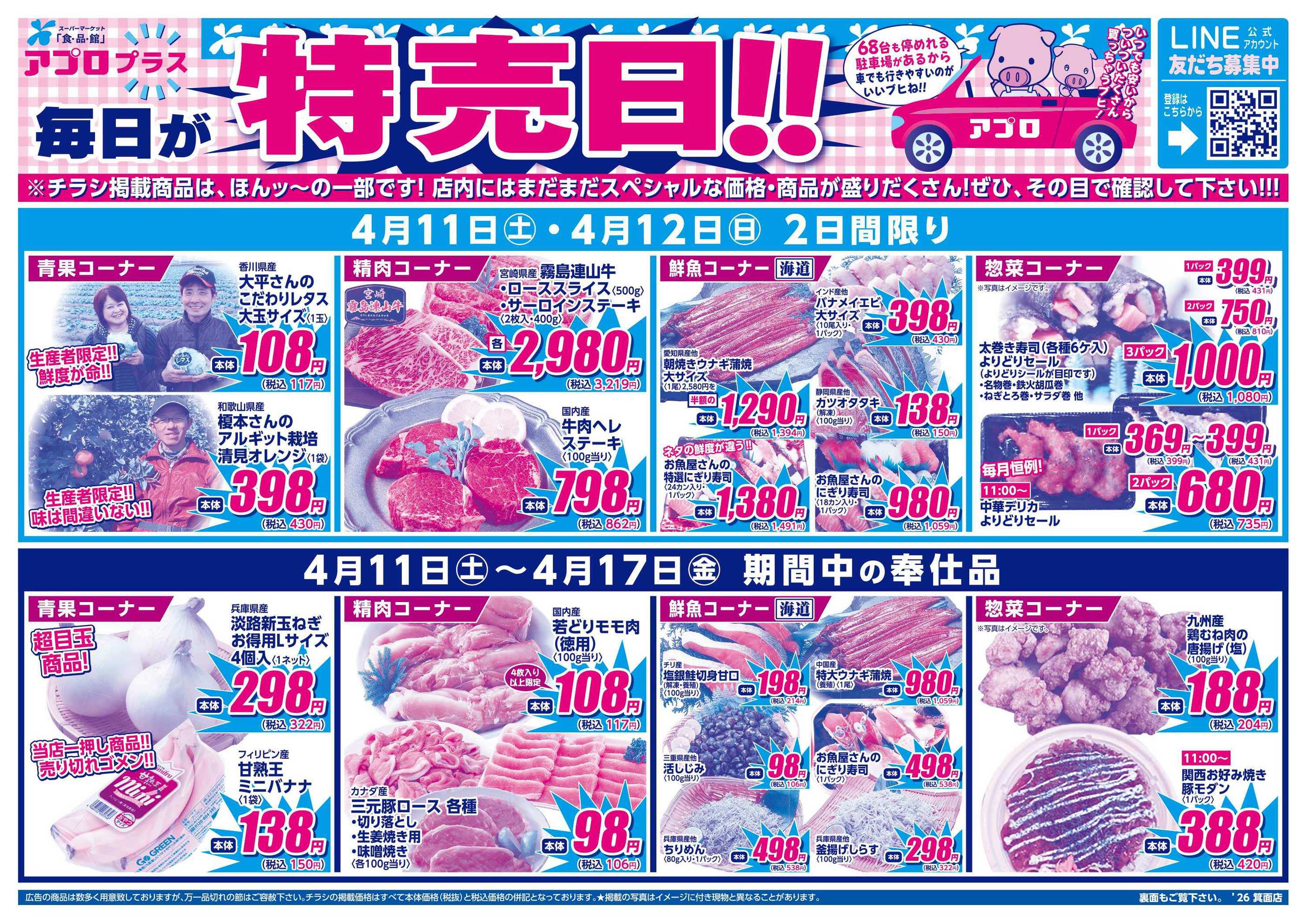 食品館アプロ箕面店今週のチラシ(2026年4月13日〜4月19日)