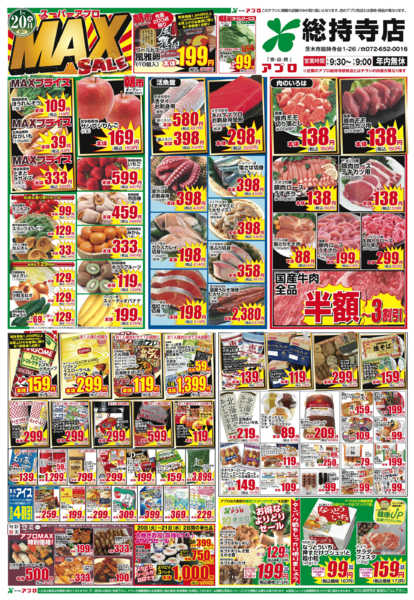 特売やセール情報など最新のチラシを掲載中。(3種類、5枚のチラシを掲載しています)