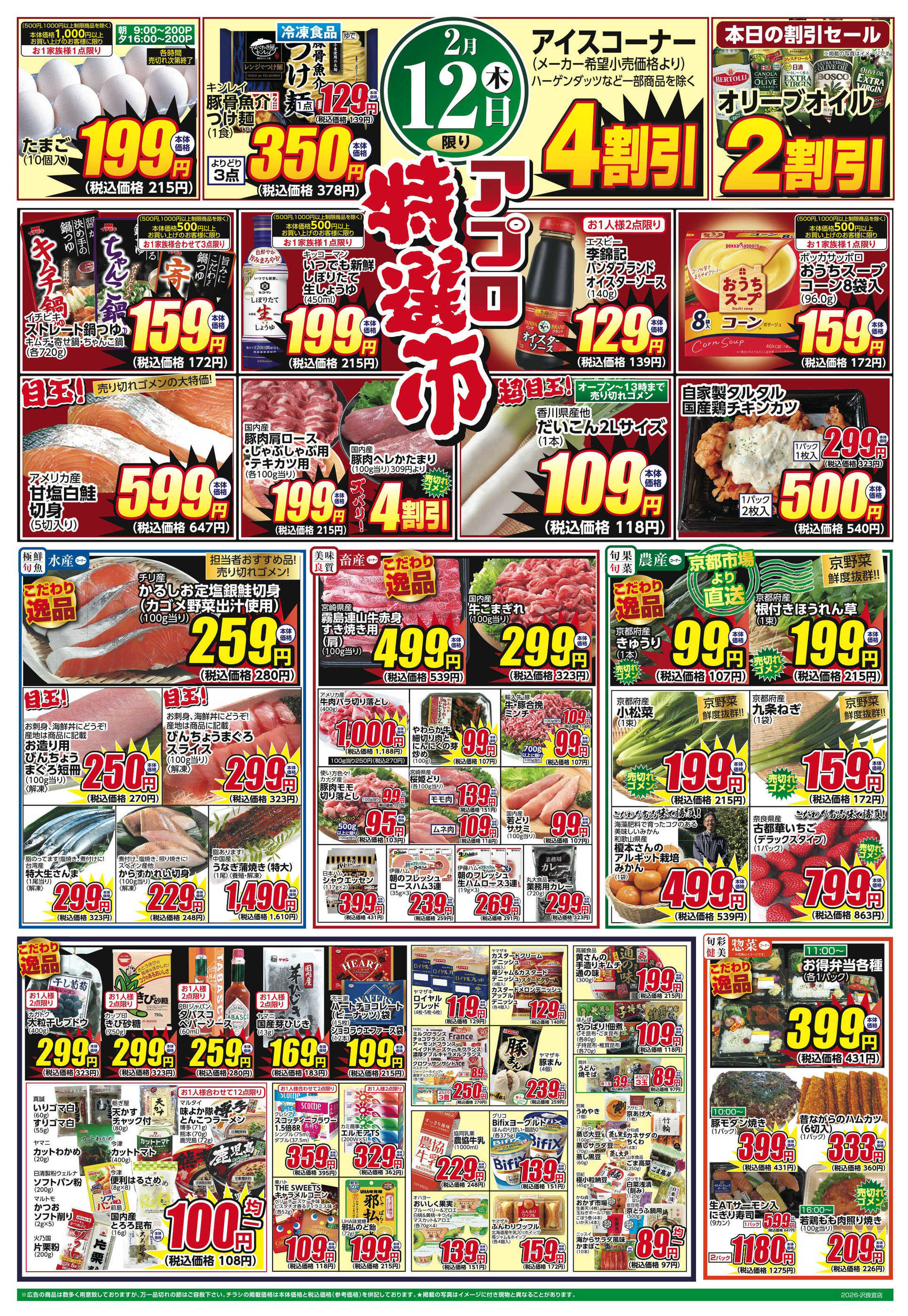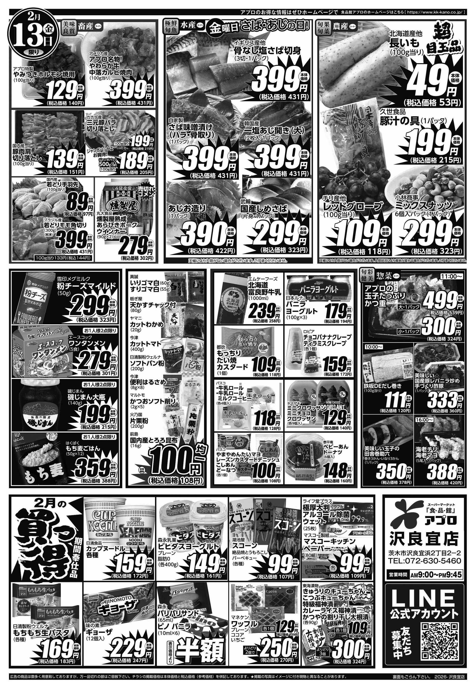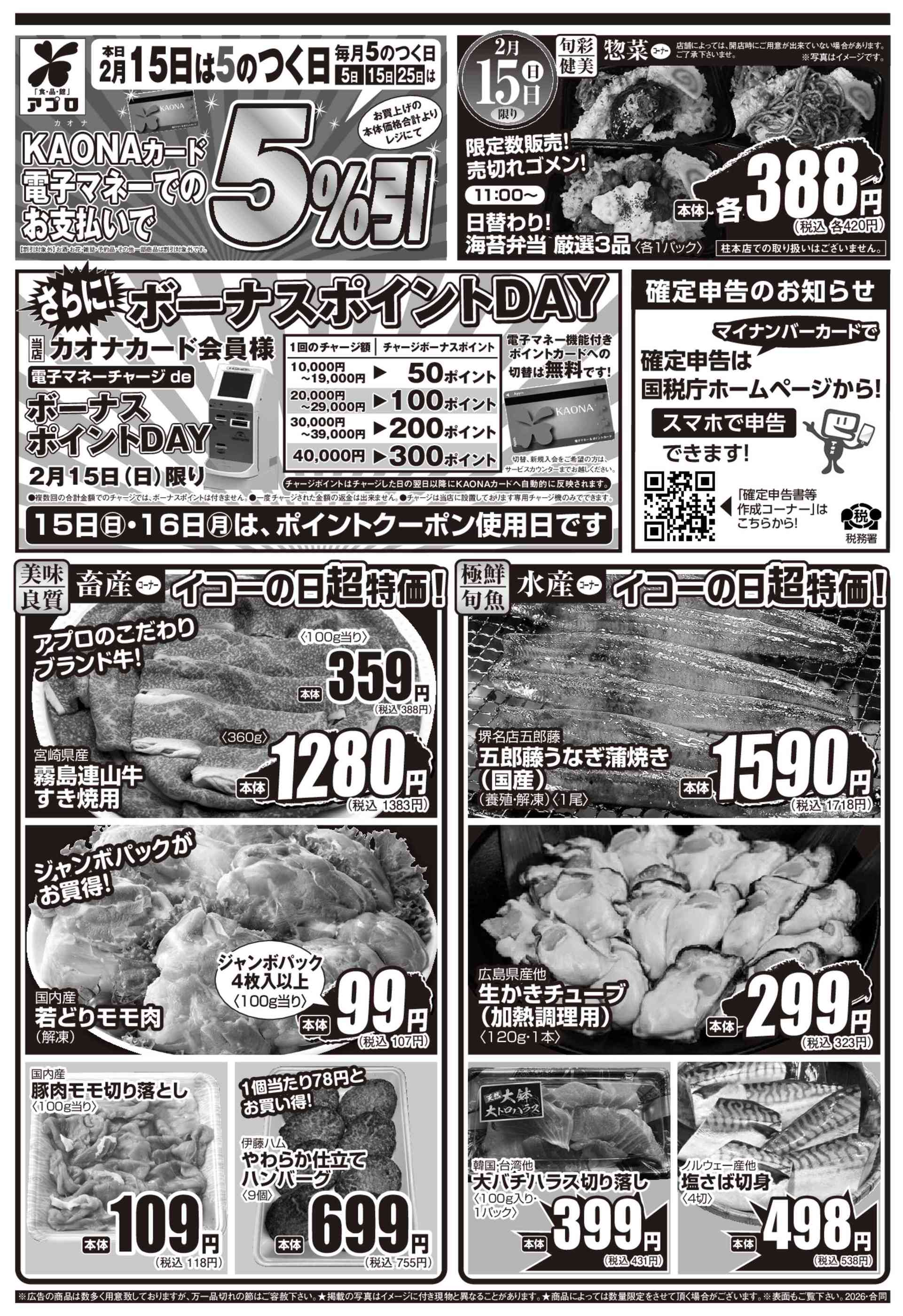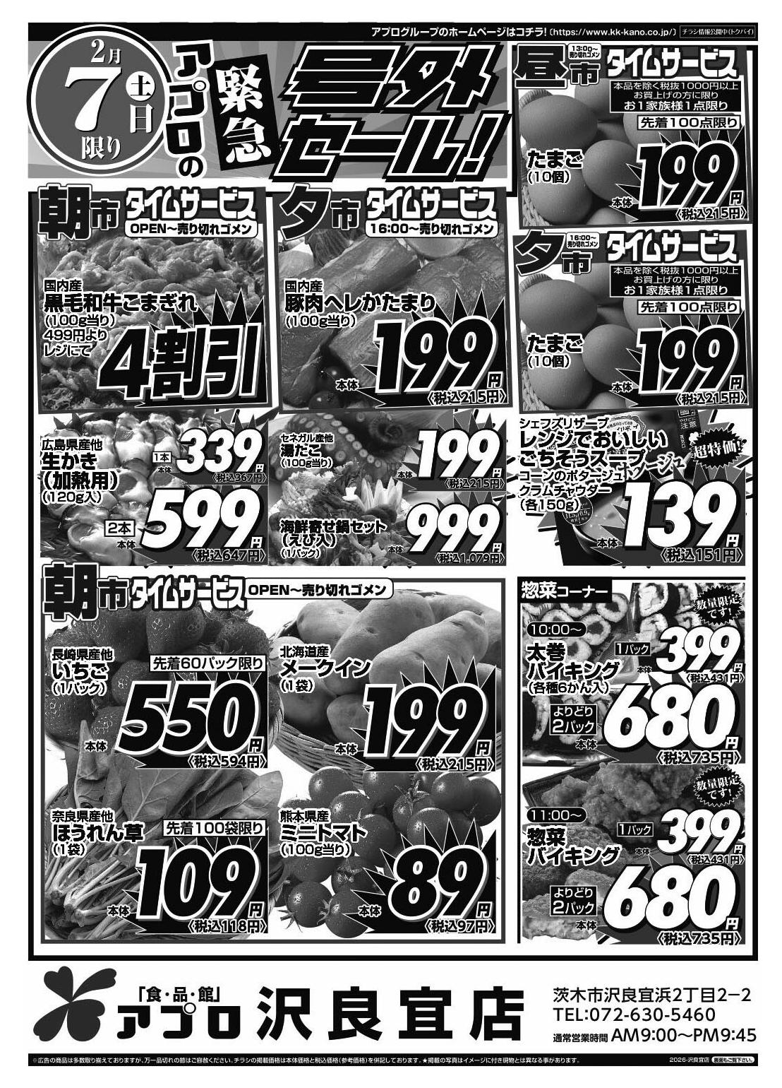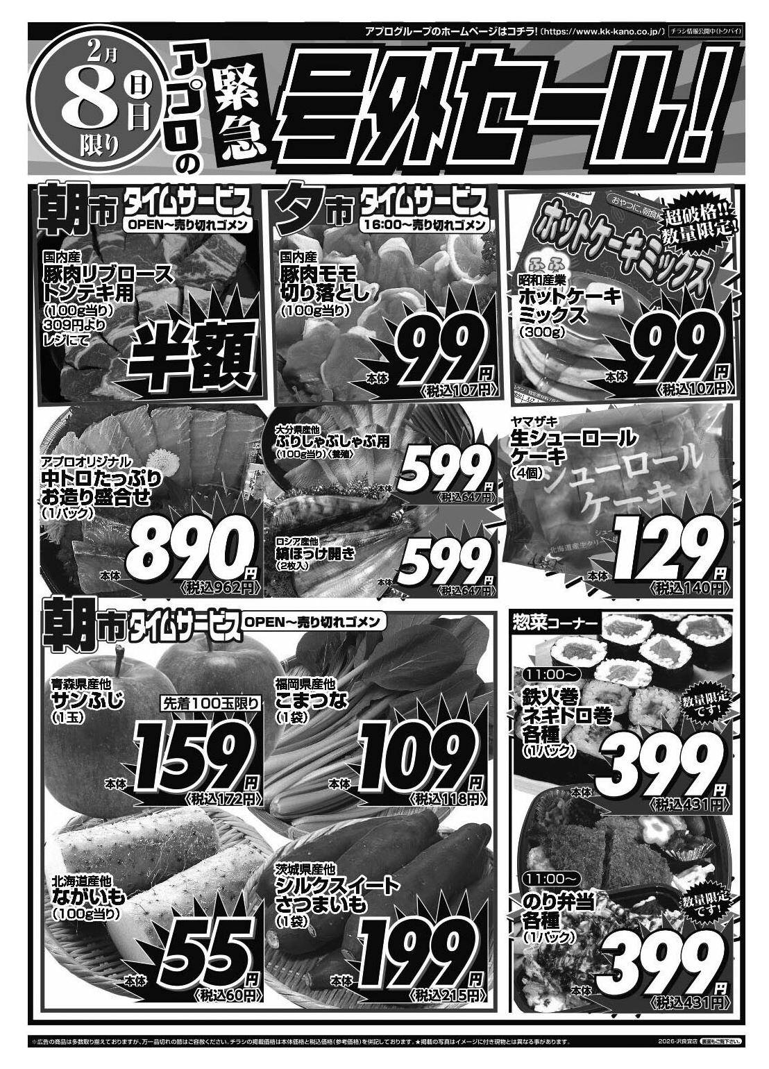 食品館アプロ沢良宜店今週のチラシ(2026年2月9日〜2月15日)