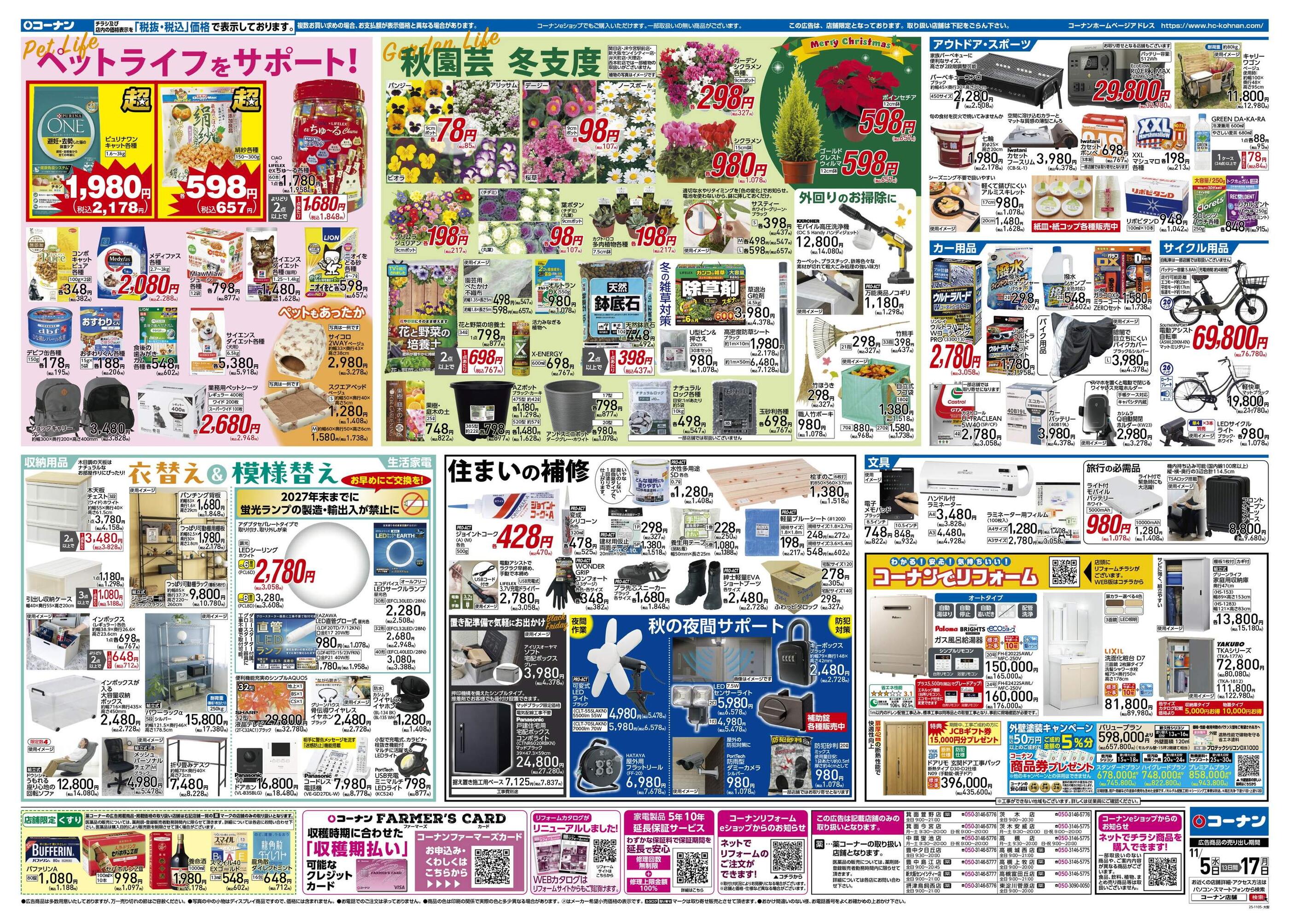 ホームセンターコーナン中環蛍池店今週のチラシ(2025年11月10日〜11月16日)