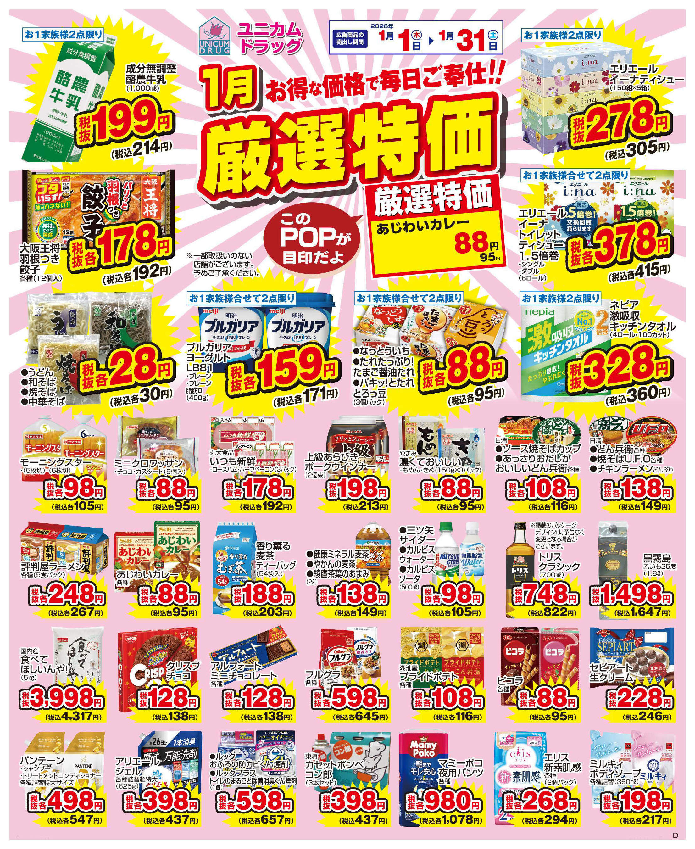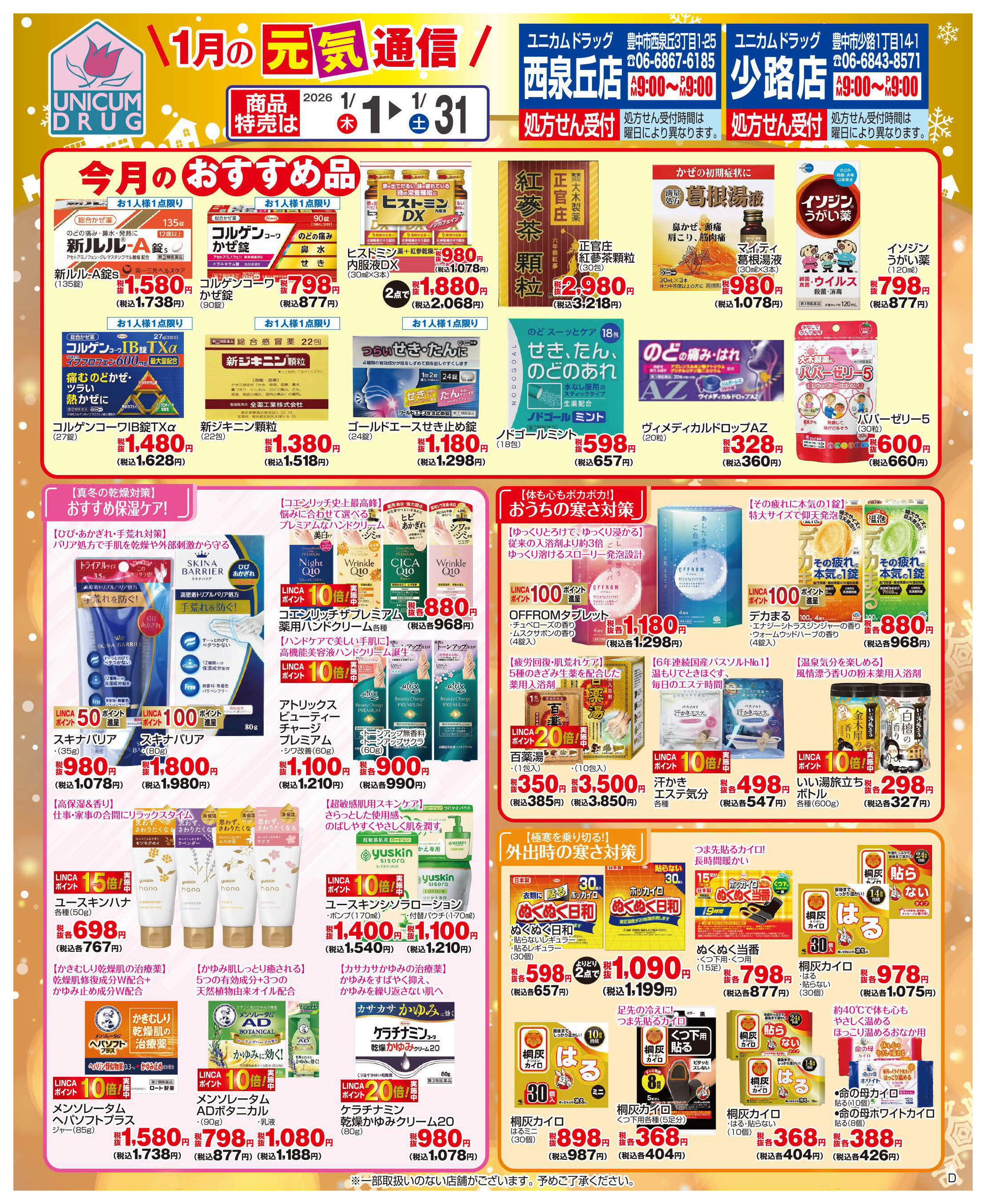 ユニカムドラッグ少路店今週のチラシ(2026年1月12日〜1月18日)