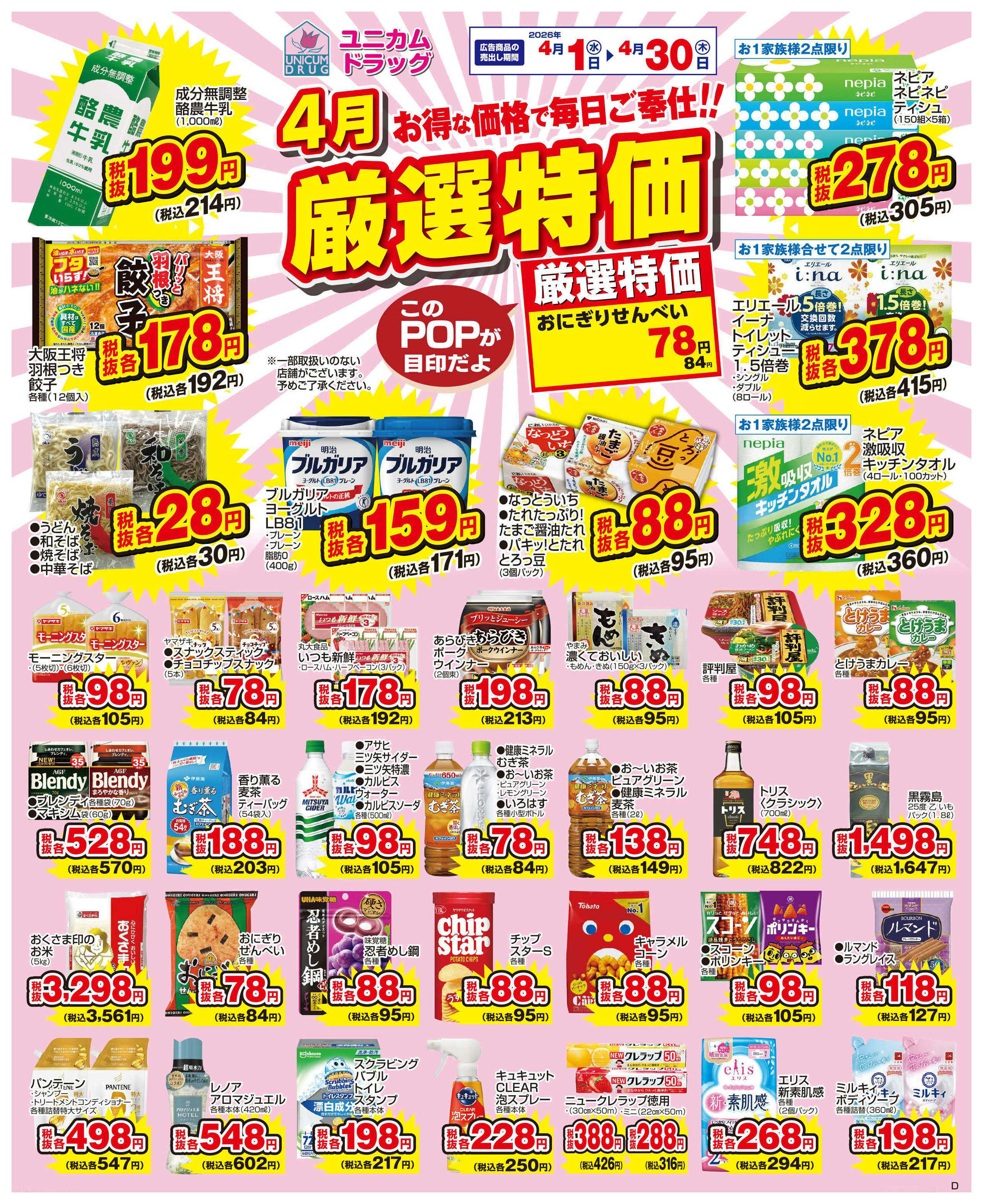 ユニカムドラッグ少路店今週のチラシ(2026年4月13日〜4月19日)