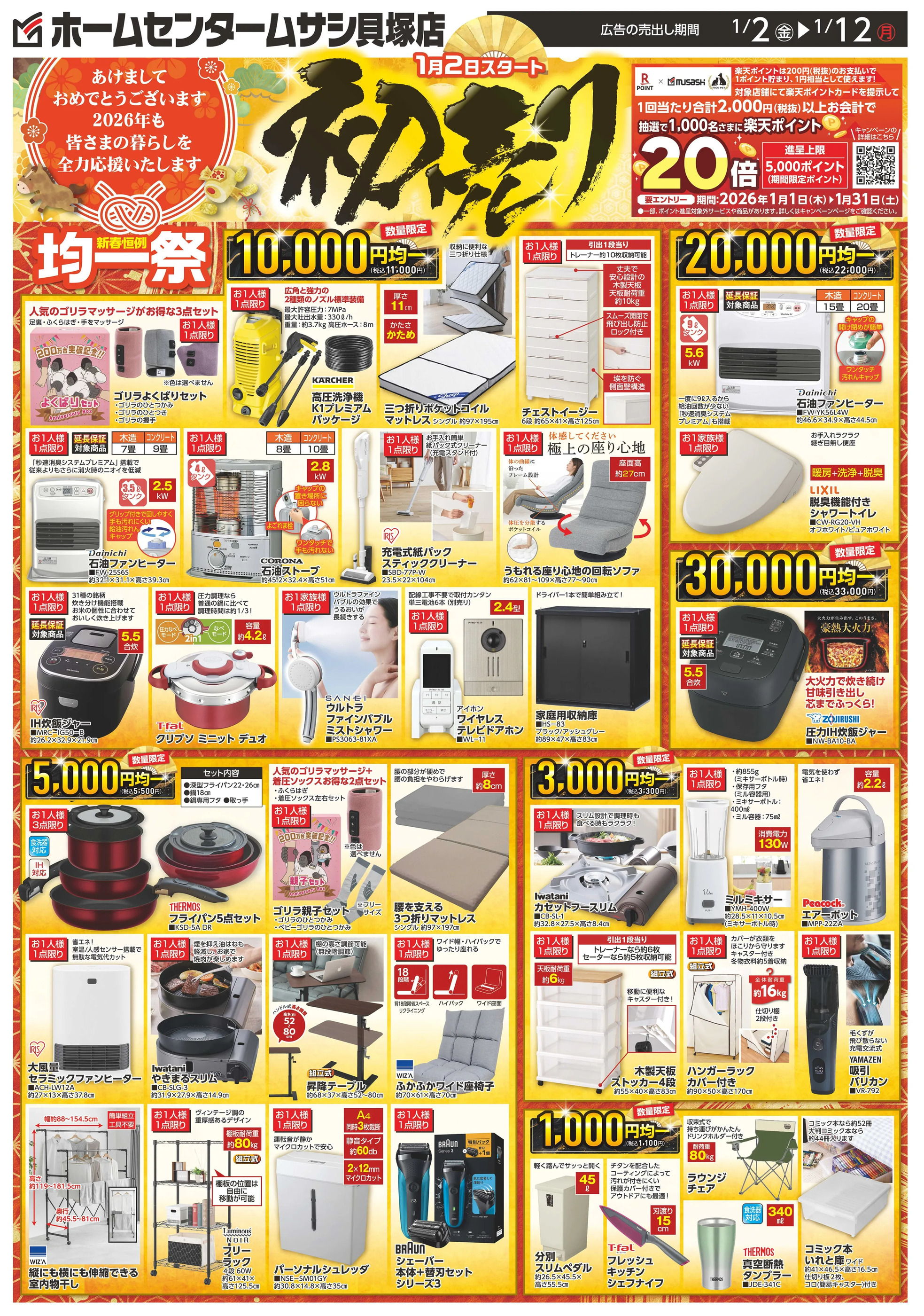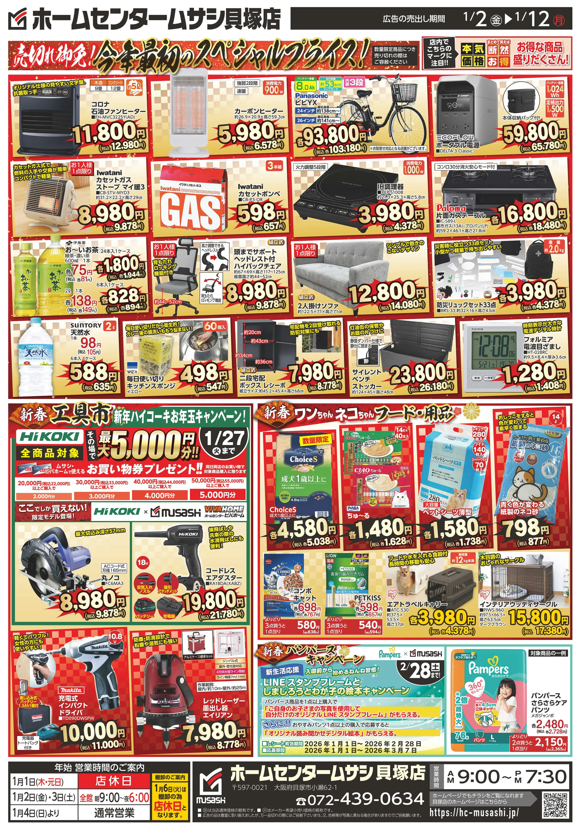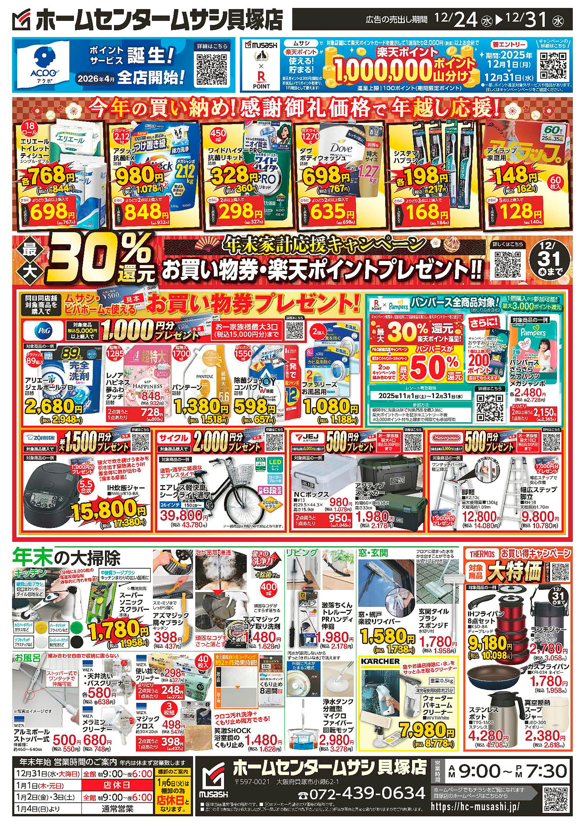ホームセンタームサシ貝塚店今週のチラシ(2025年12月29日〜1月4日)