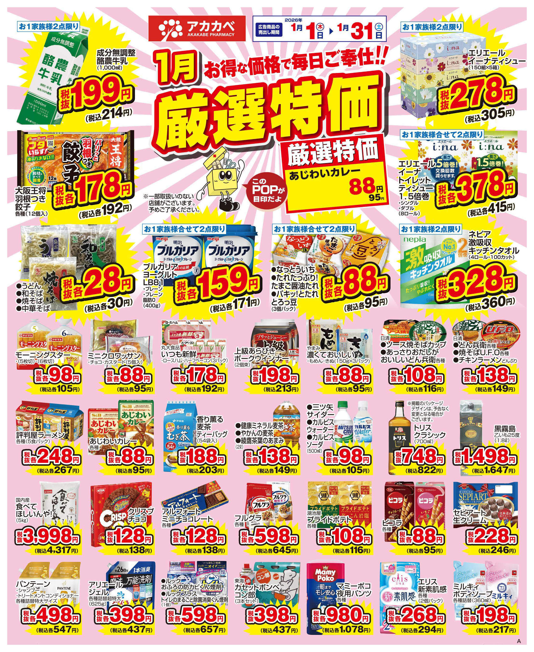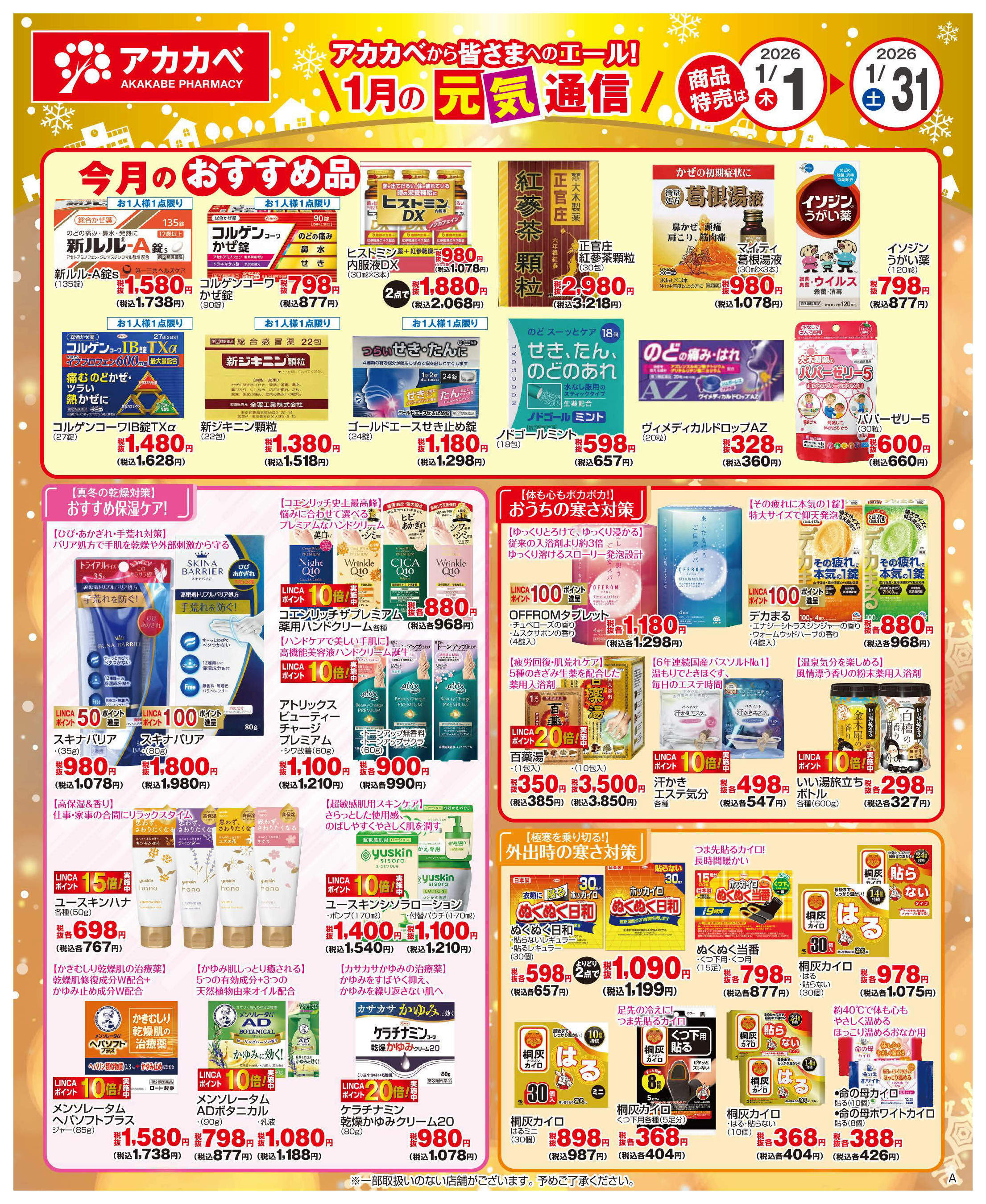 ドラッグアカカベ門真三ツ島店今週のチラシ(2026年1月19日〜1月25日)