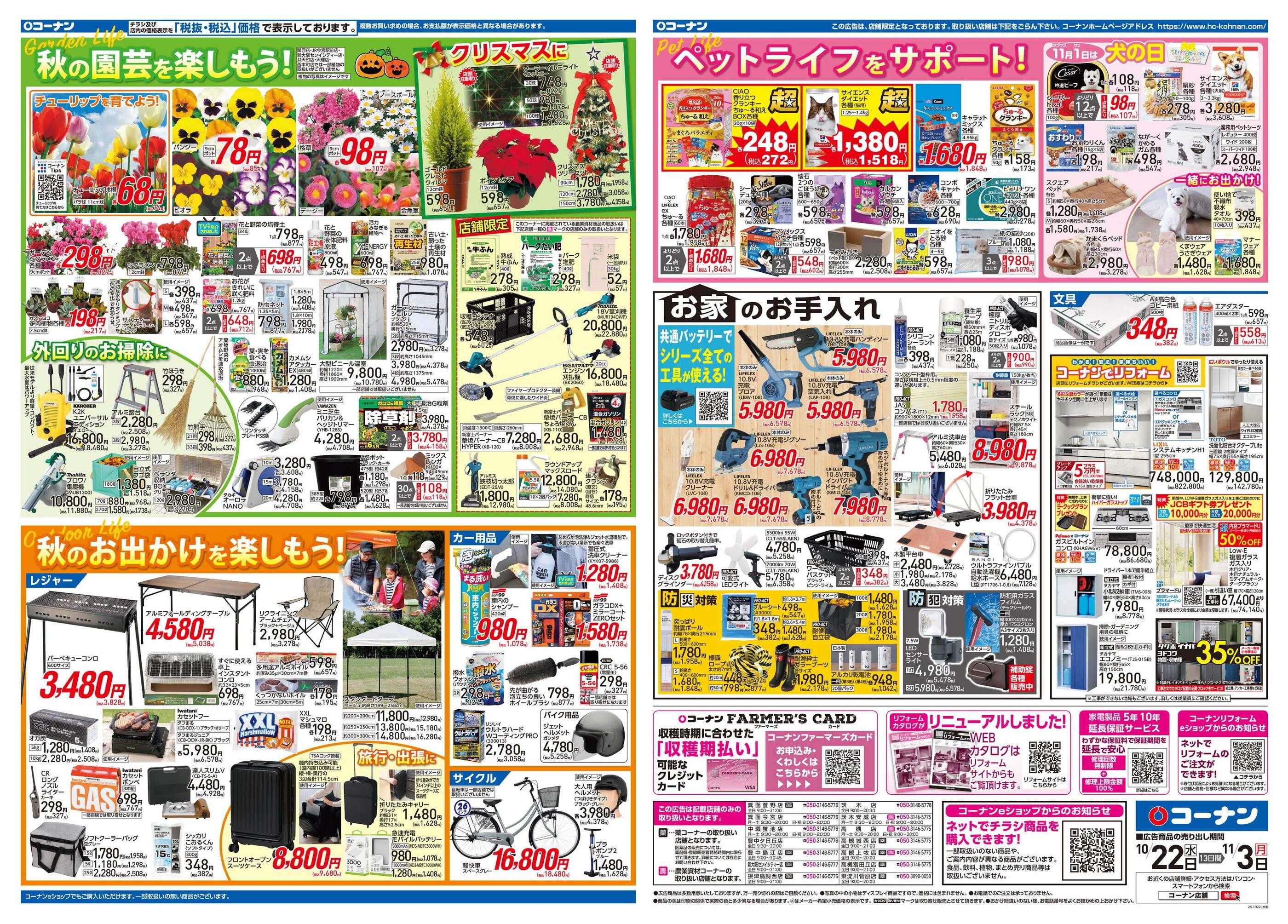ホームセンターコーナン高槻城西店今週のチラシ(2025年11月3日〜11月9日)