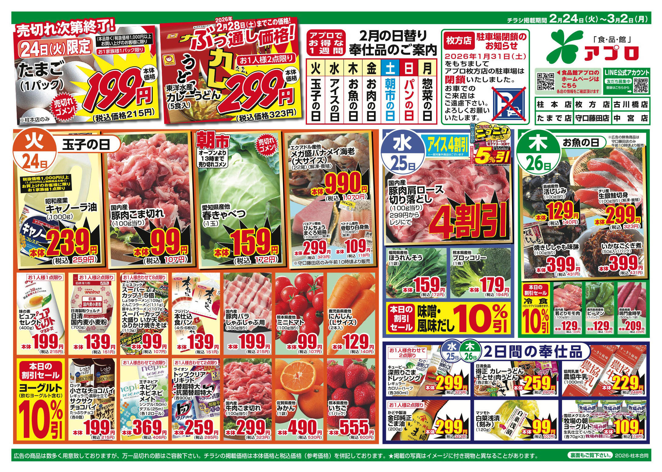 食品館アプロ柱本店今週のチラシ(2026年2月23日〜3月1日)