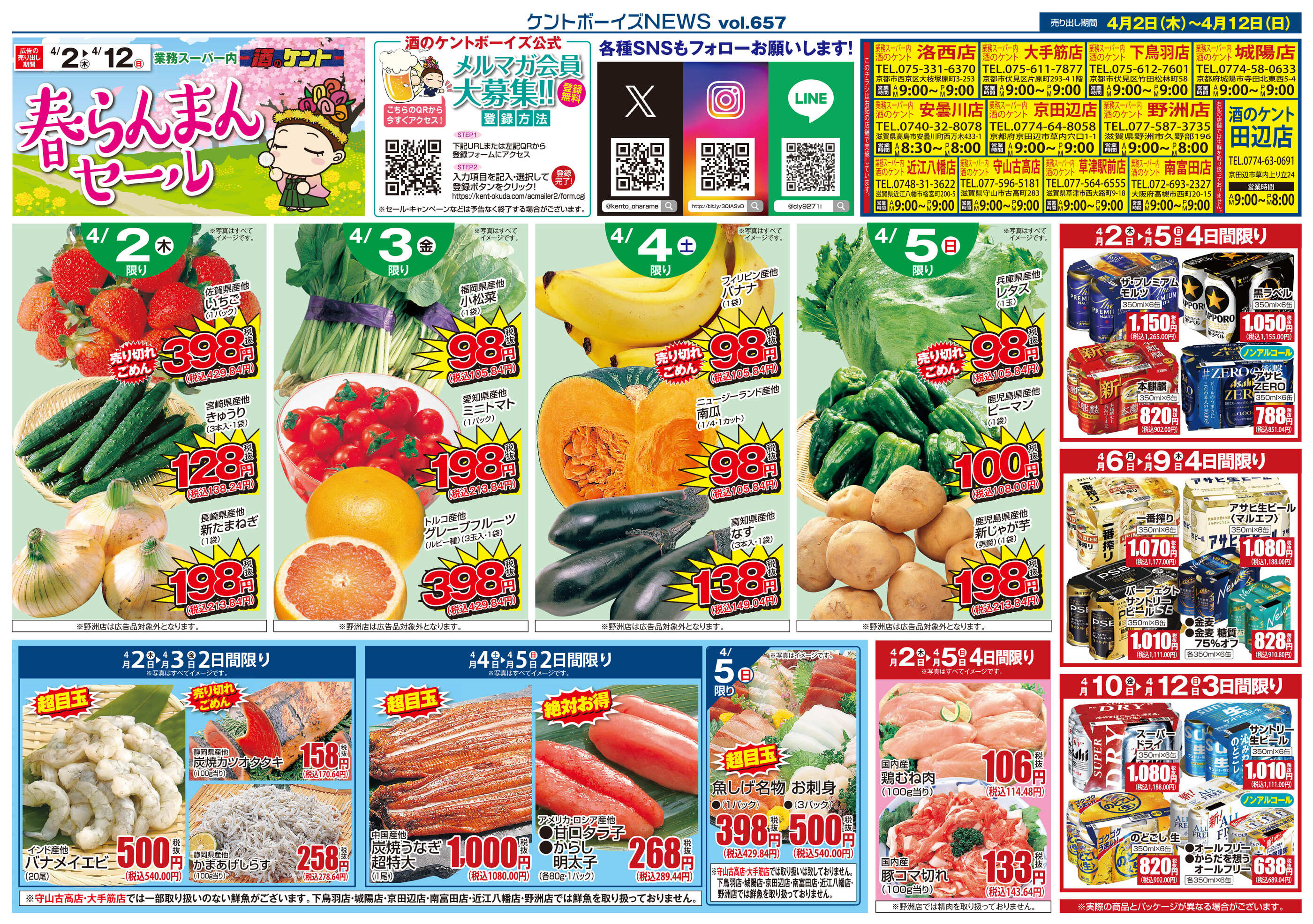 酒のケント&業務スーパー南富田店今週のチラシ(2026年3月30日〜4月5日)