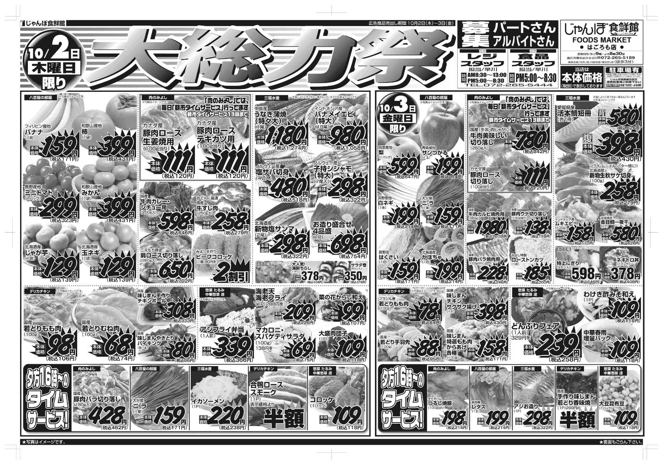 じゃんぼ食鮮館羽衣今週のチラシ(2025年9月29日〜10月5日)