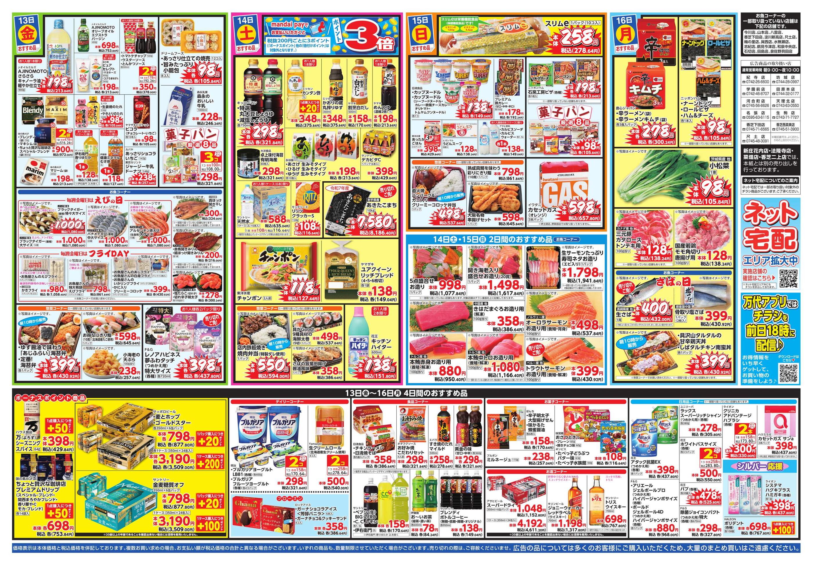 特売やセール情報など最新のチラシを掲載中。(3種類、4枚のチラシを掲載しています)