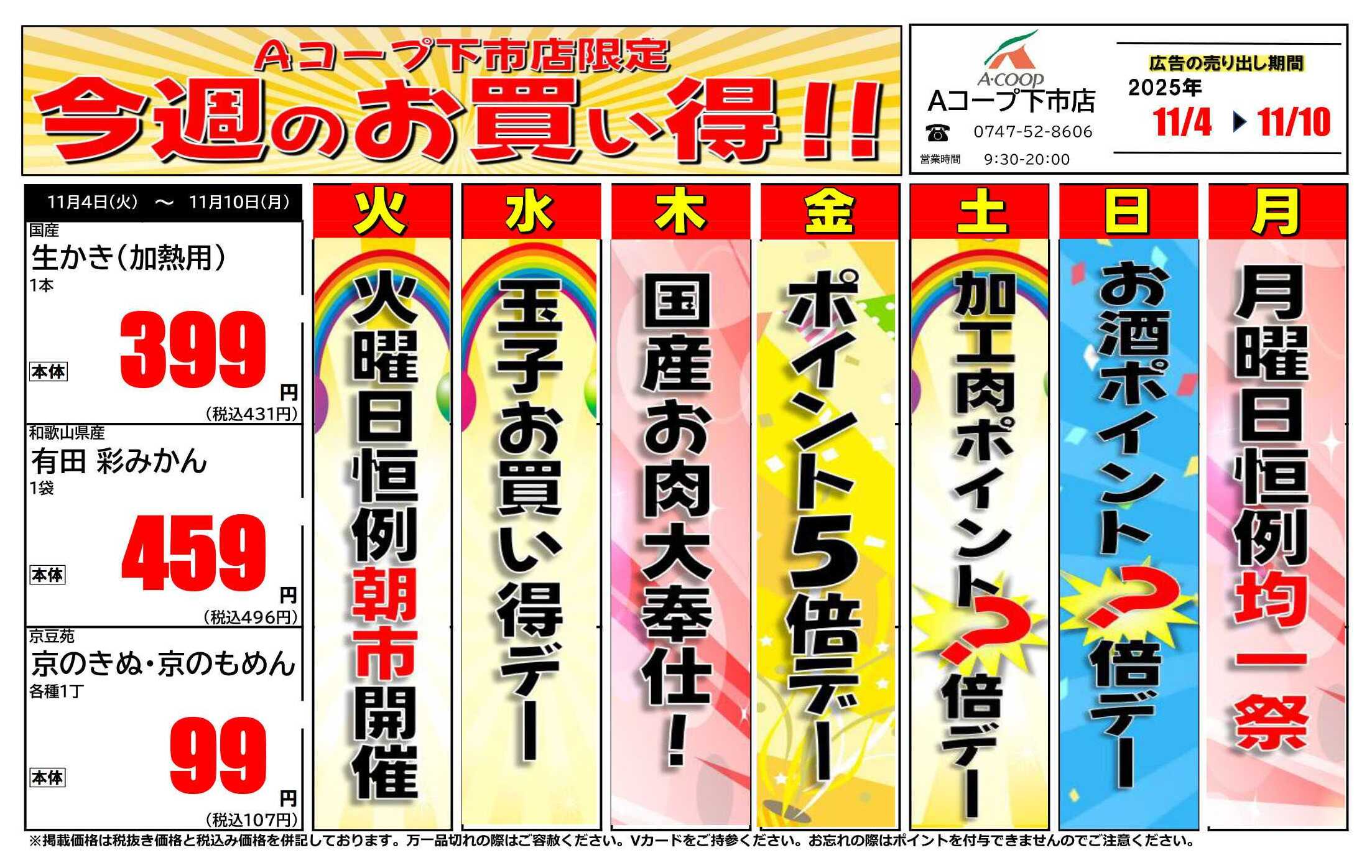 エーコープ下市店今週のチラシ(2025年11月10日〜11月16日)