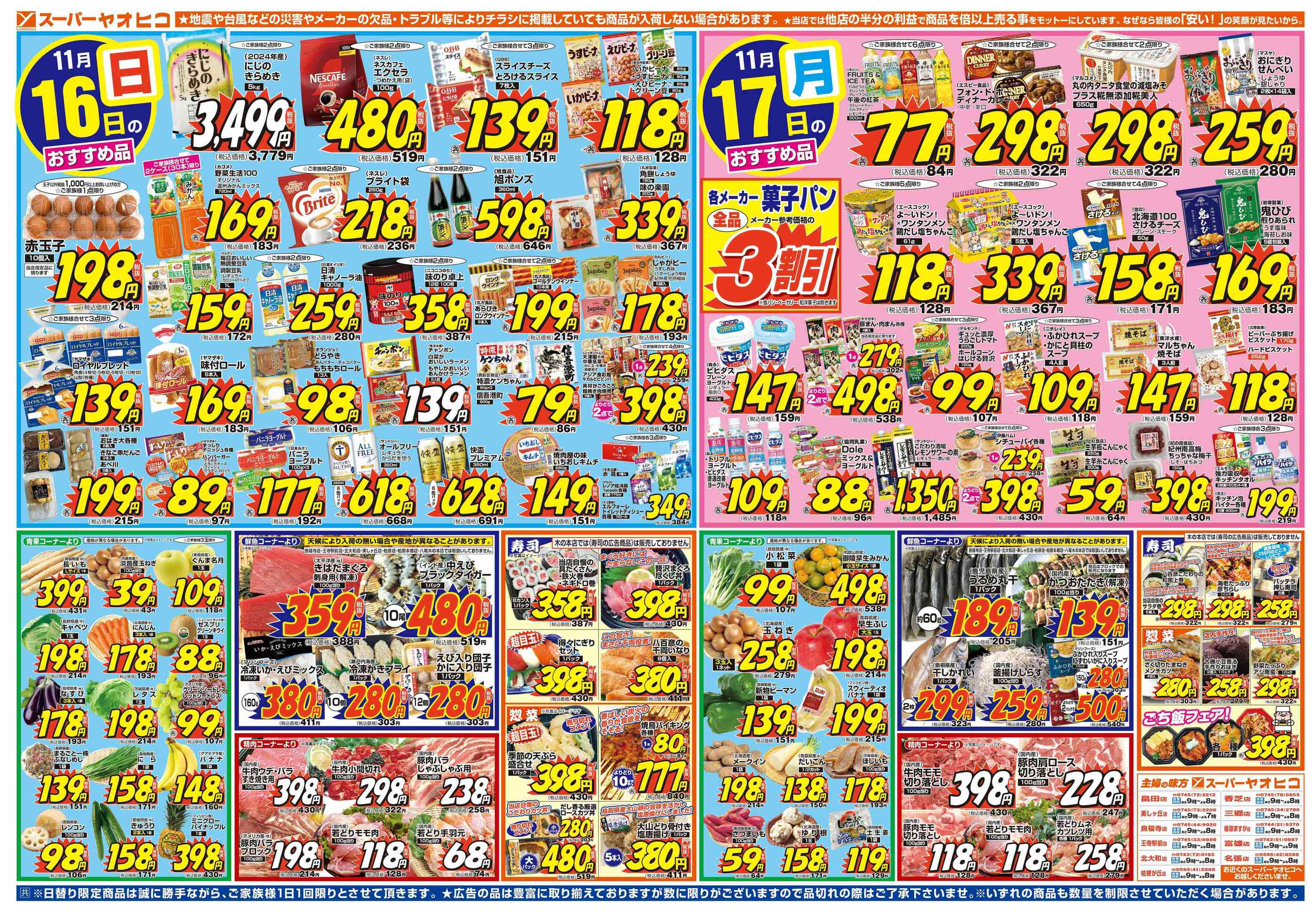 ヤオヒコ富雄店今週のチラシ(2025年11月10日〜11月16日)