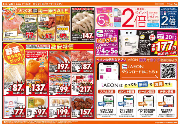 特売やセール情報など最新のチラシを掲載中。(4種類、5枚のチラシを掲載しています)