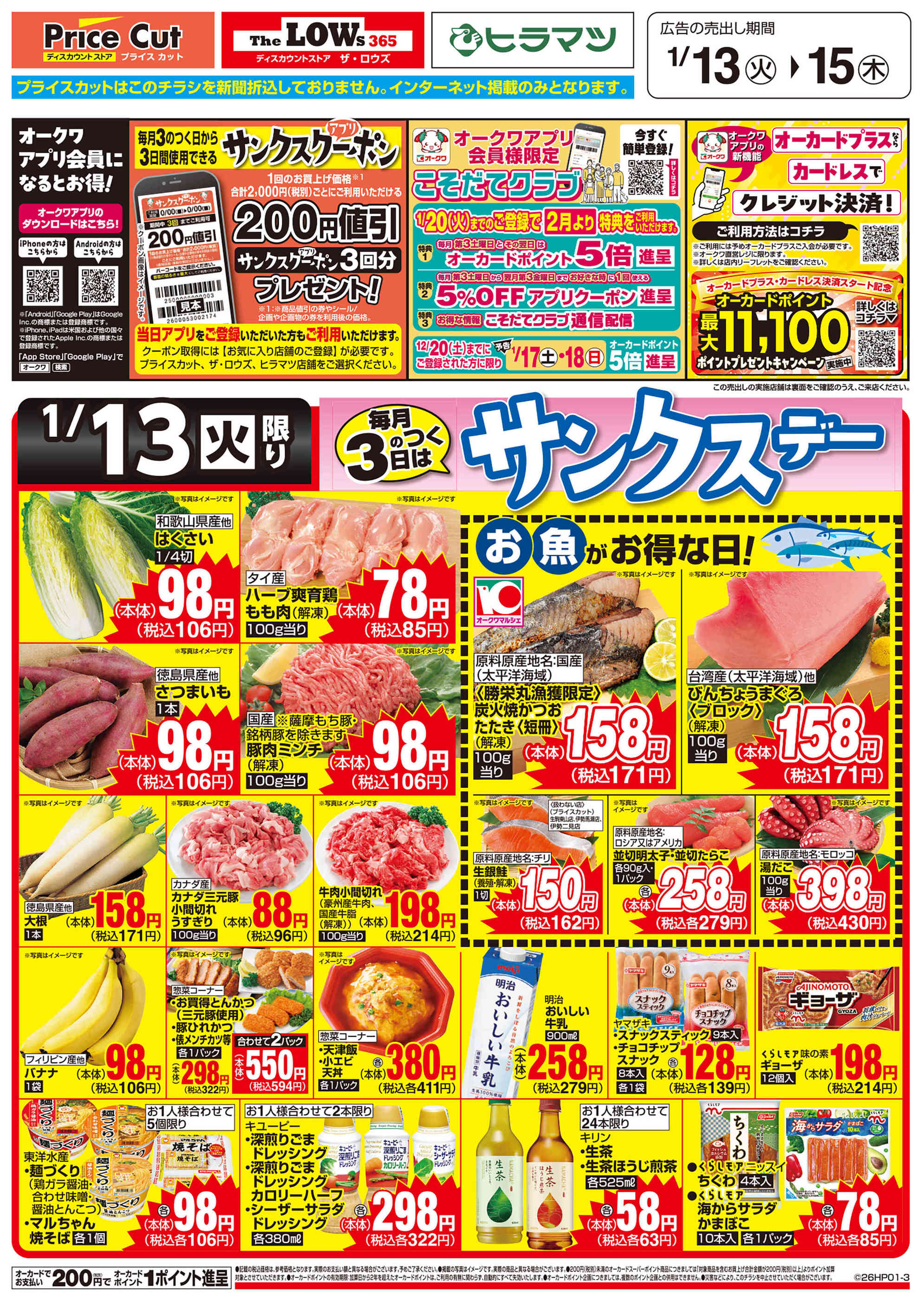 プライスカット榛原福地店今週のチラシ(2026年1月12日〜1月18日)