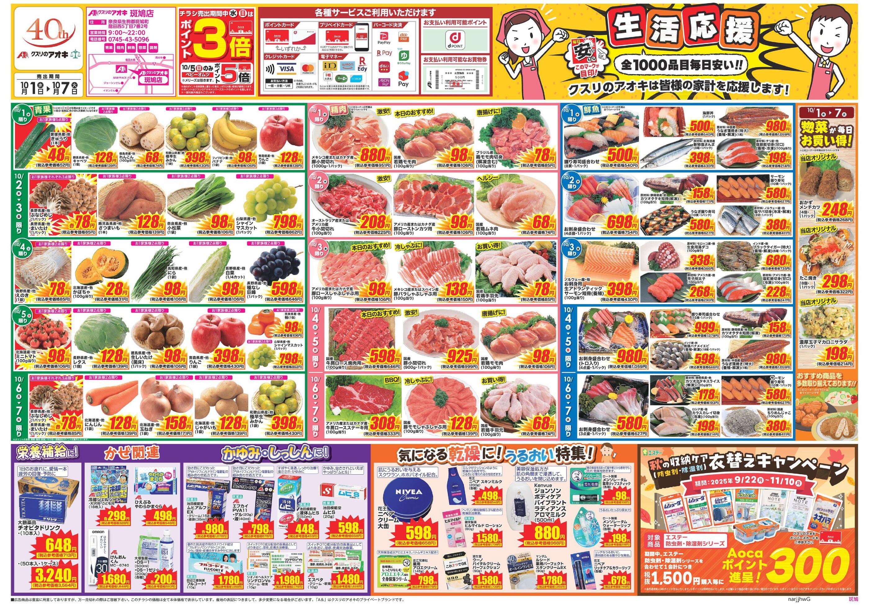クスリのアオキ斑鳩店今週のチラシ(2025年10月20日〜10月26日)