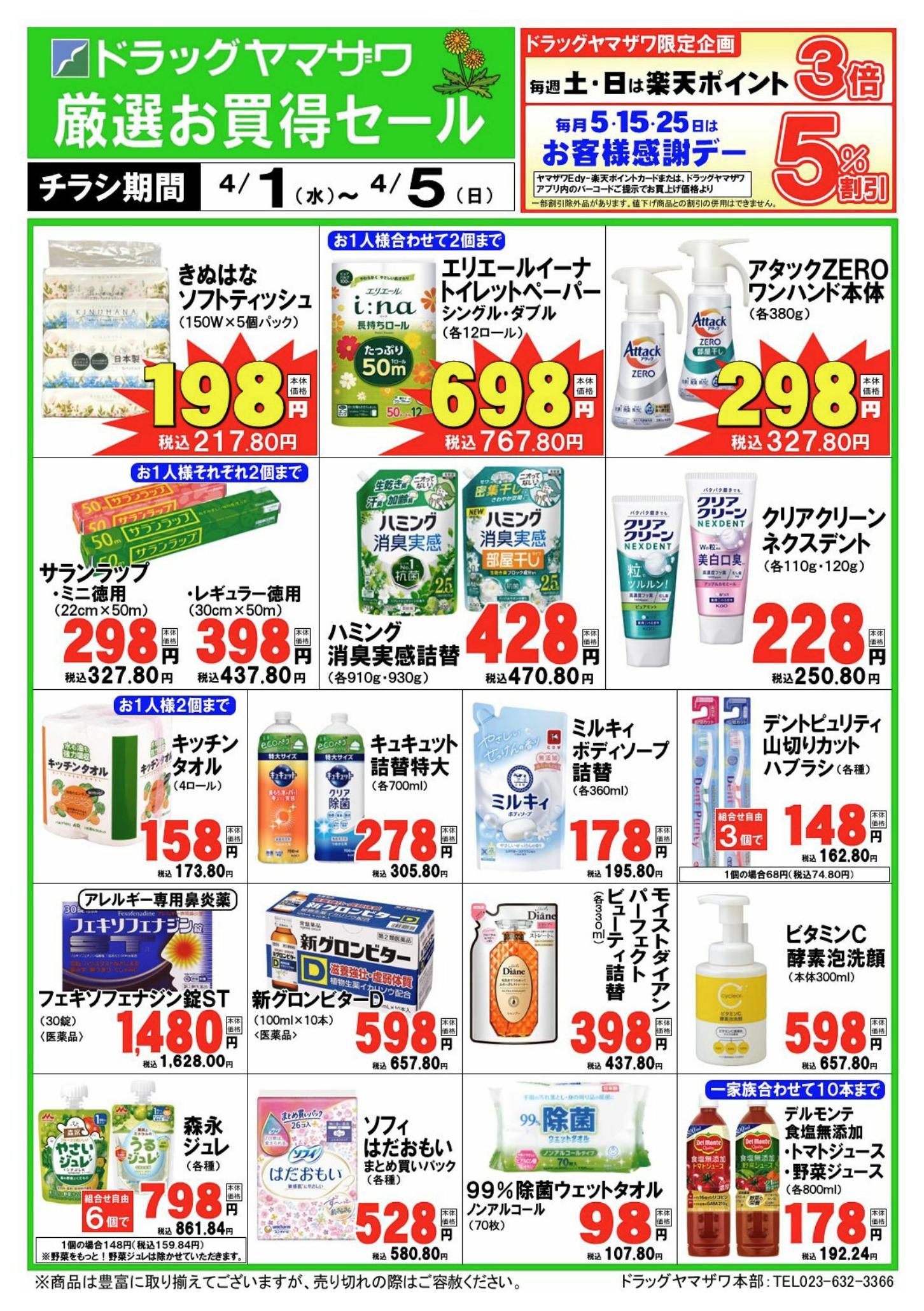 - 2026年4月1〜30日までドラッグヤマザワ4/1号WEBチラシnew (1枚)