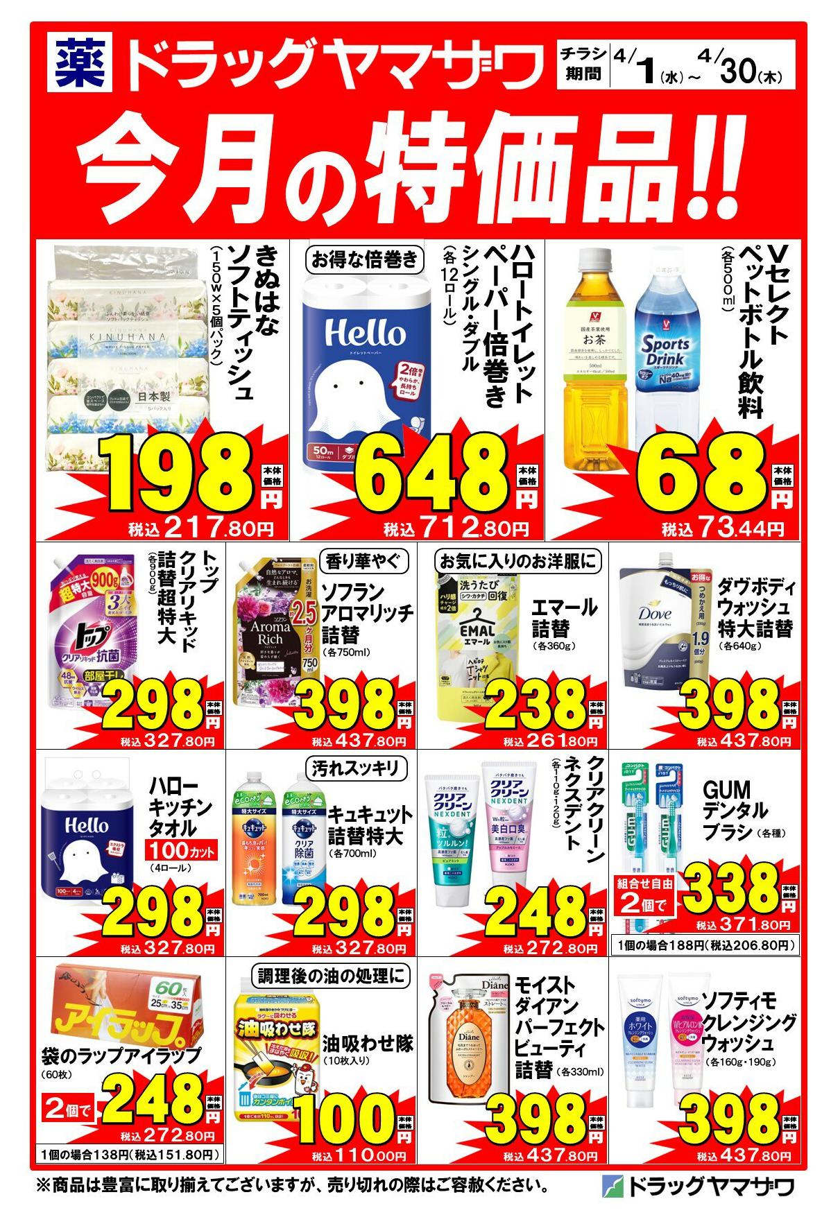 - 2026年4月1〜30日までドラッグヤマザワ高砂店今月の特価品!new (1枚)