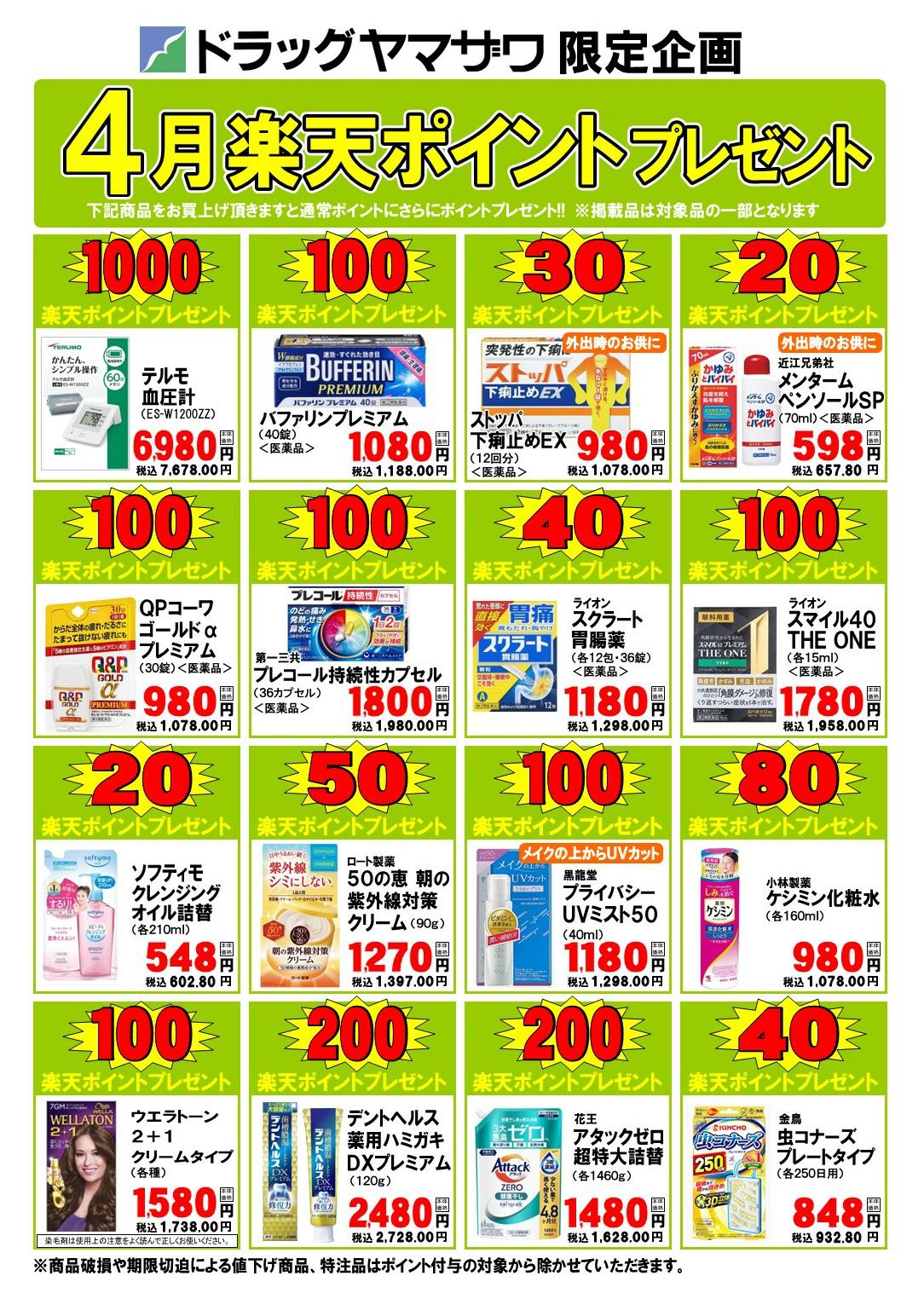 - 2026年4月1〜30日までドラッグヤマザワ今月のポイントプレゼントnew (1枚)