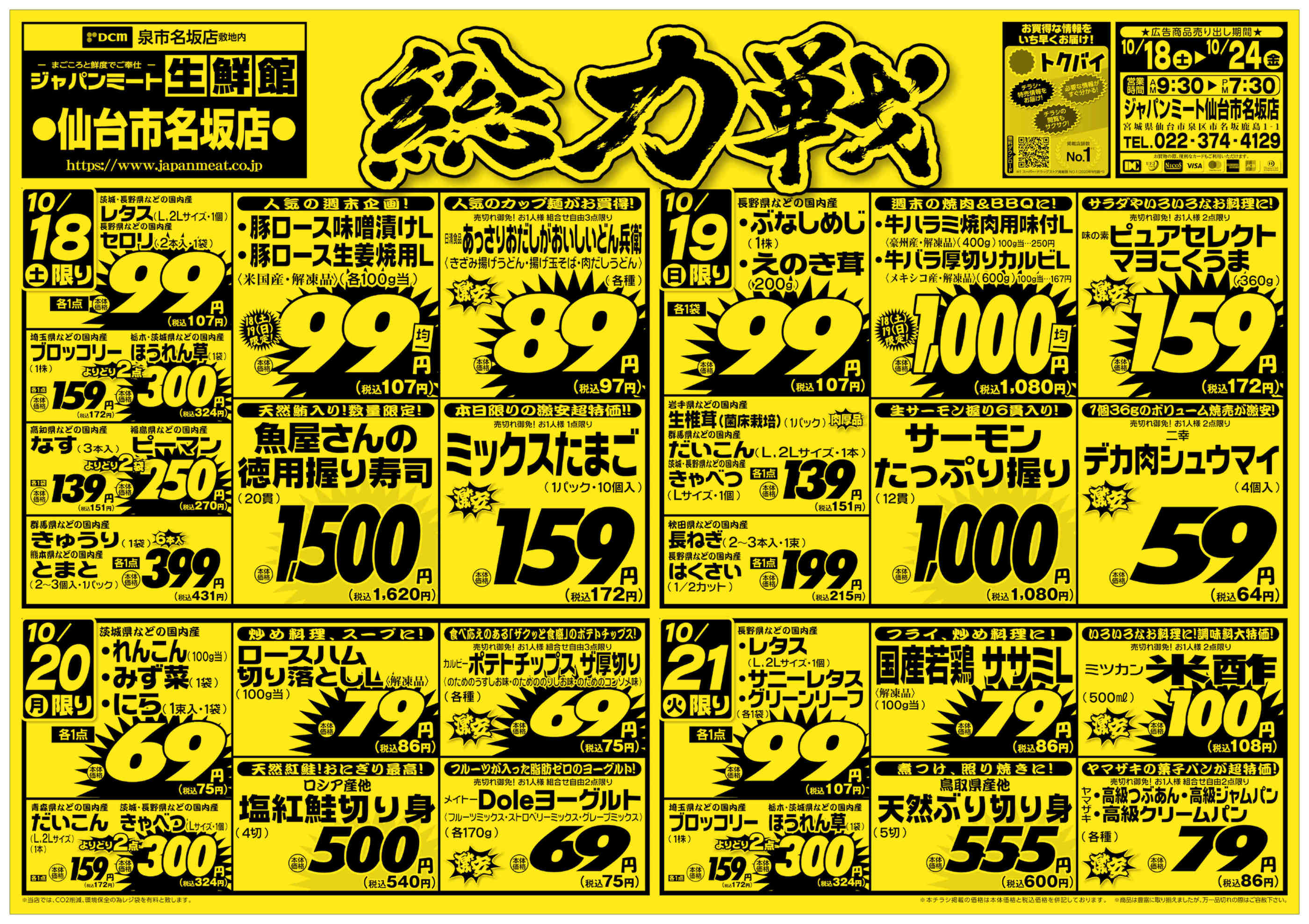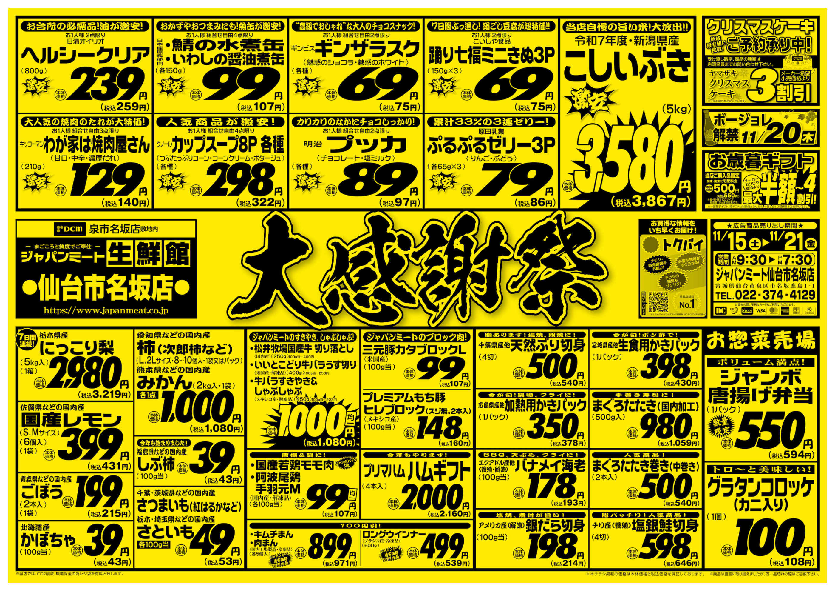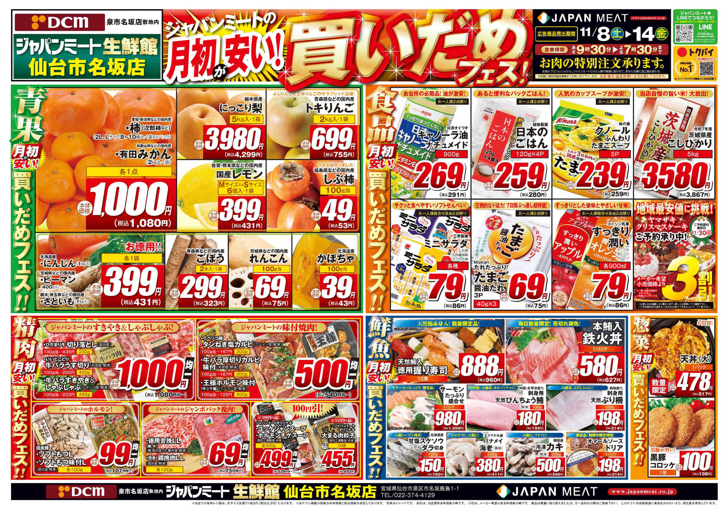 ジャパンミート生鮮館仙台市名坂店今週のチラシ(2025年11月17日〜11月23日)