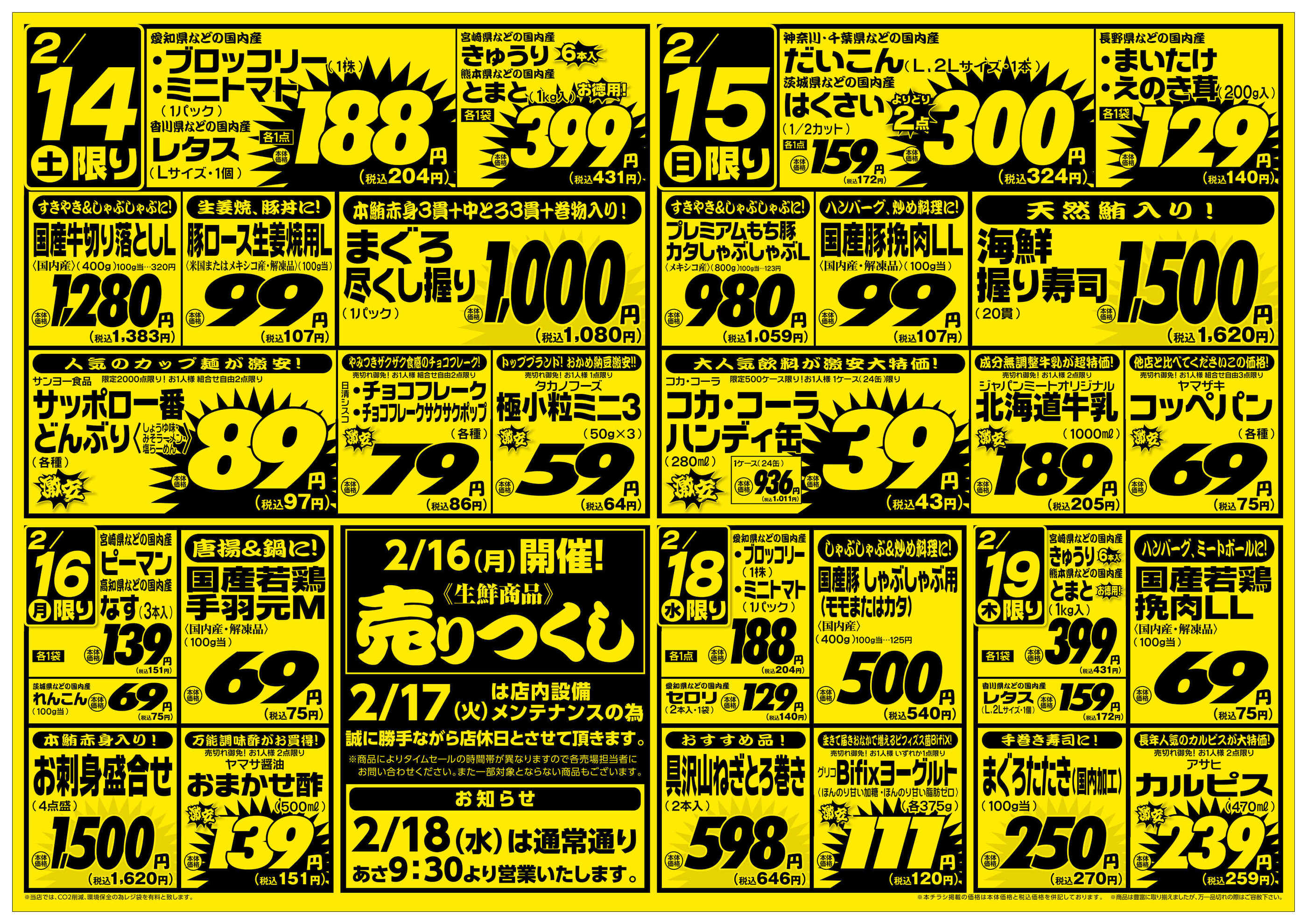 特売やセール情報など最新のチラシを掲載中。(1種類、2枚のチラシを掲載しています)