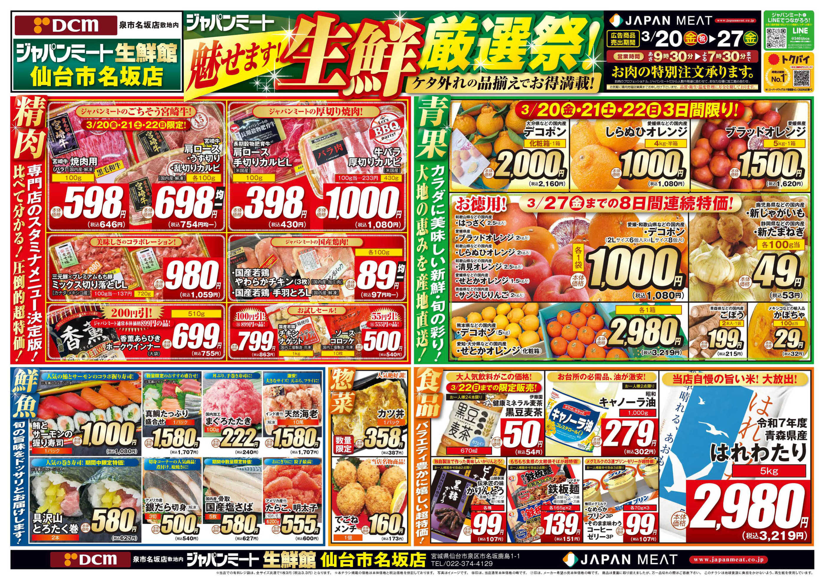 ジャパンミート生鮮館仙台市名坂店今週のチラシ(2026年3月23日〜3月29日)
